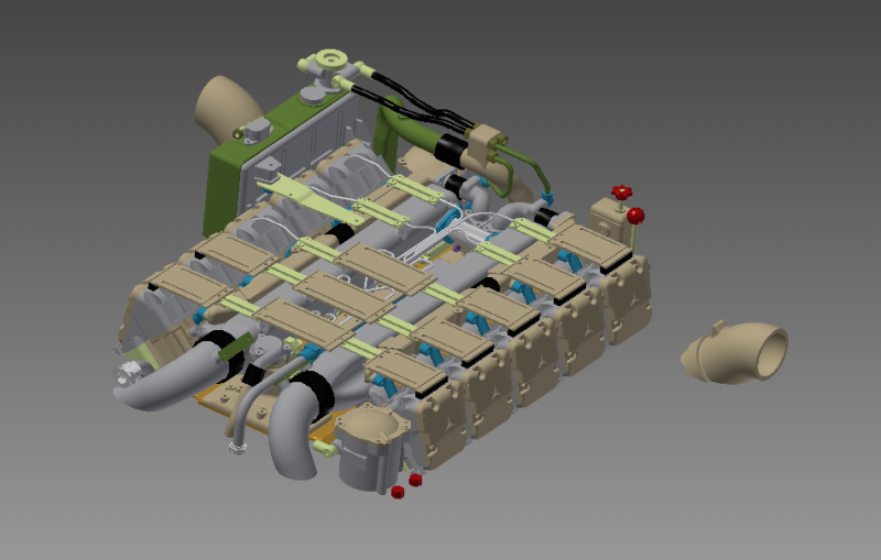 Der aktuelle Konstruktionsstand. Noch"ein paar Kabel und Leitungen". Dann ist der Motor fertig.