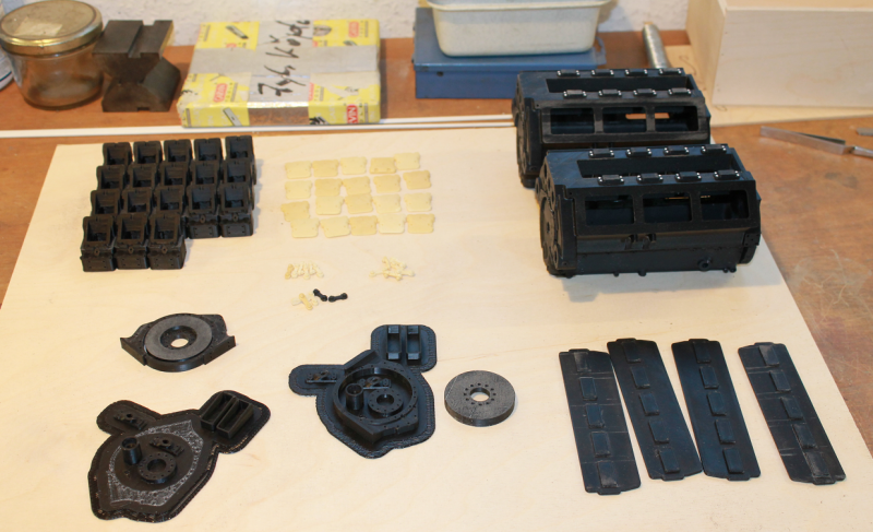 Hier die fertigen Druckteile. Anfangs wollte ich ja die schönen Zylinderköpfe behalten. Da ich aber diverse Bohrungen benötige, habe ich mich entschlossen, die Grundkörper zu drucken. So habe ich wenigstens die Deckel gerettet.