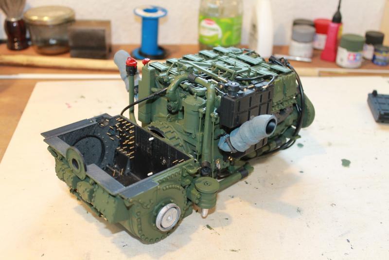 Die Oberseite ist nun auch fertig. Als nächstes kommt die Abgasanlage und der Kühlwasser-Ausgleichsbehälter an die Reihe.