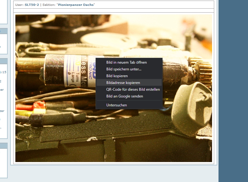 Dann kopierte Bildadresse in Deinem Post einfügen und vorne mit img in eckiger Klammer und hinten als /img in eckiger Klammer als Bild deklarieren (siehe Bild)