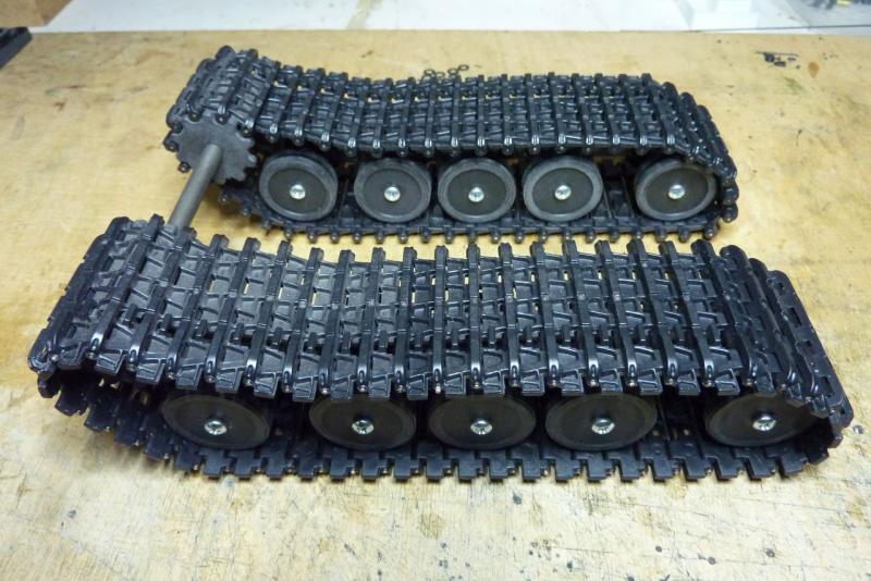 In Ermangelung einer Gummikette , muss eine Tiger 1 Kette herhalten . Die Breite passt ungefähr und von der Optik sollte es auch halbwegs gehen .