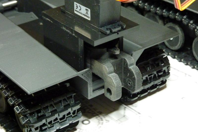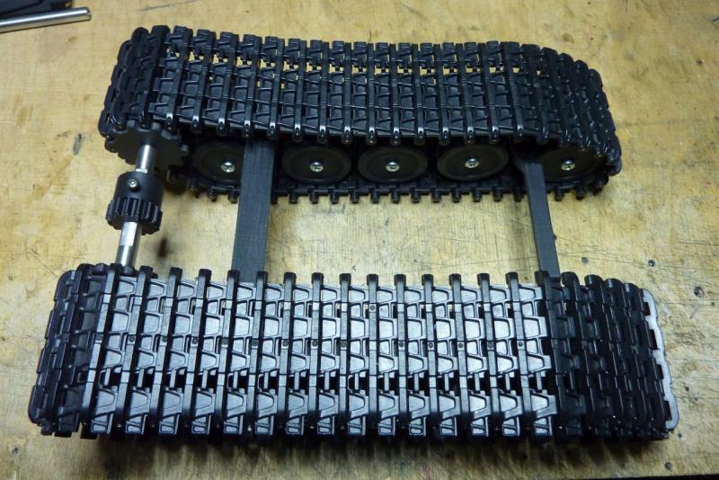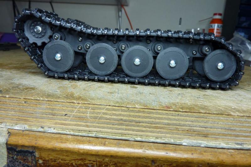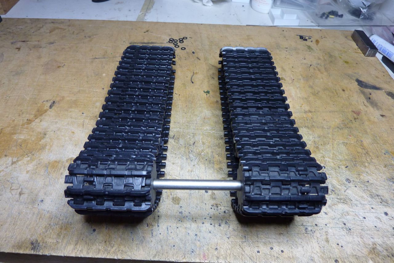 So sieht dann das Fahrwerk von der Seite aus . Der Kettenlauf passt natürlich noch garnicht . Insgesamt kommt das Fahrwerk durch das Gewicht noch deutlich tiefer . Problem ist , dass ich die Federung nur begrenzt einstellen kann .