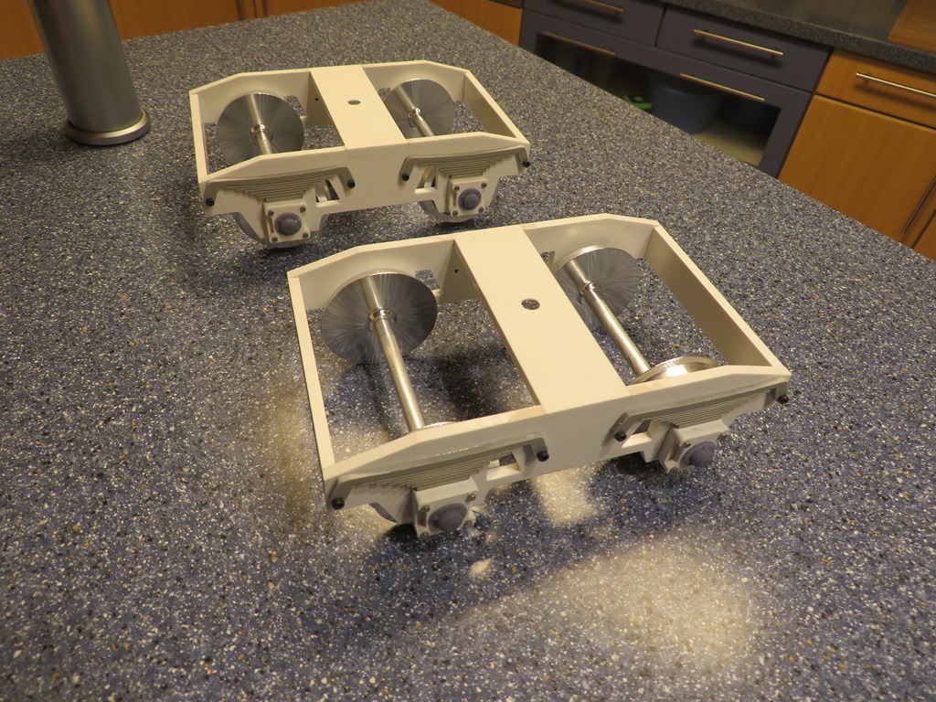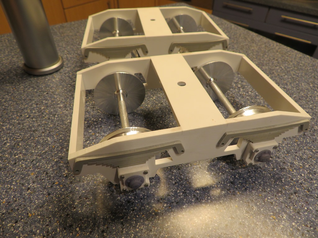 Die Radnaben Verbreiterungen der Drehgestelle.