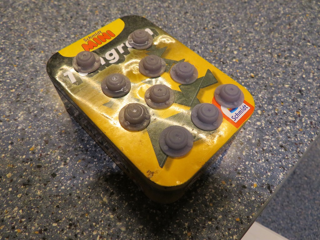 Mit Hilfe von Bohrern habe ich diese Deckungsgleich zusammen geklebt.