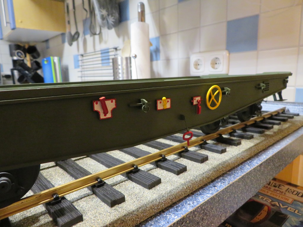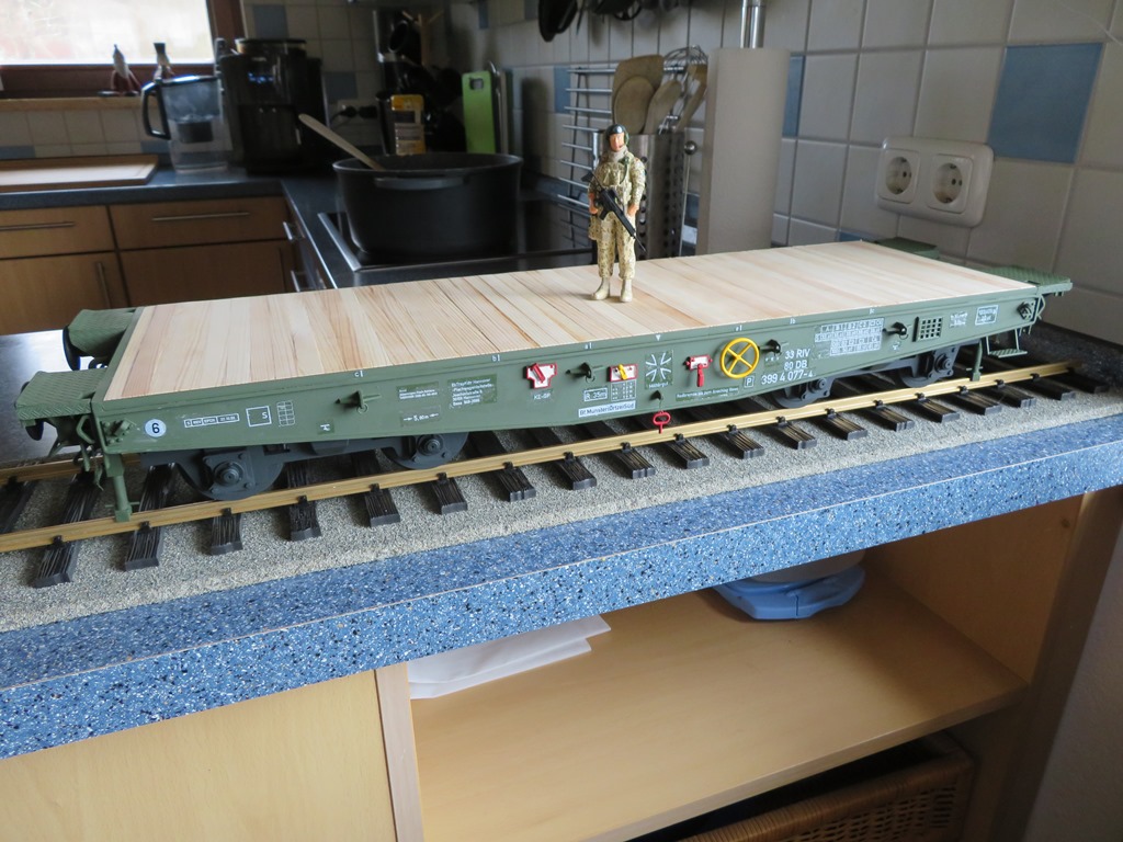 hier mal wie bereits angezeigt die Bilder mit aufgebrachten Decals am Flachwagen.