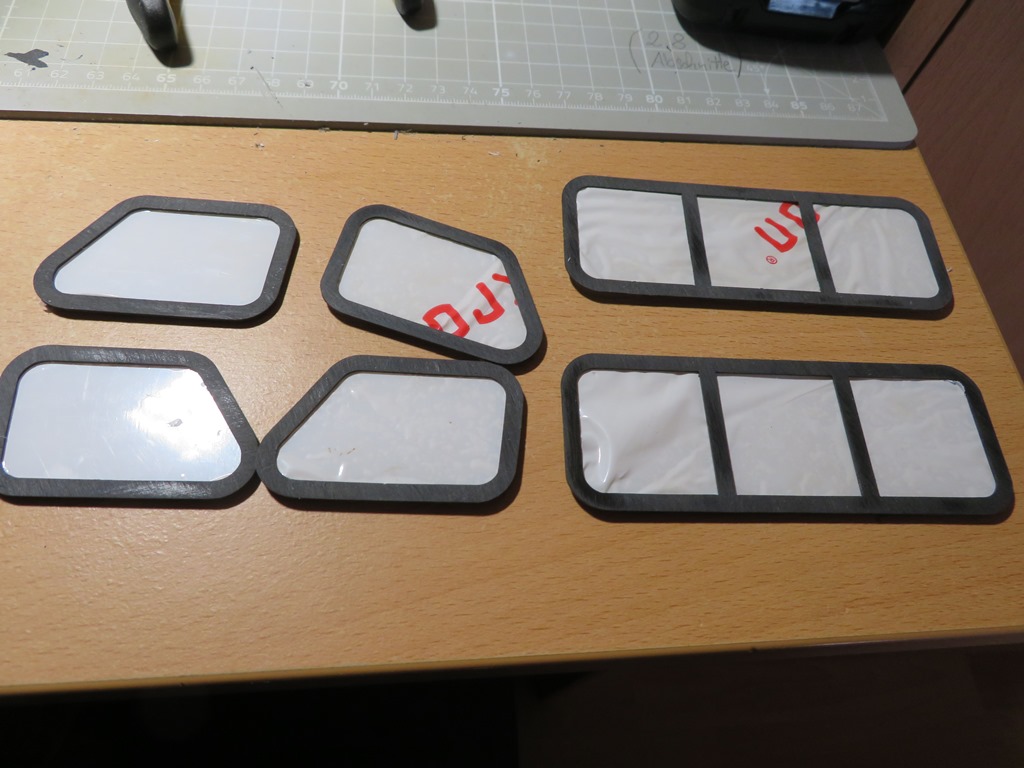 Nachdem ich mir schon die Beine in den Bauch gestanden habe, wurden auch gleich die Scheiben mit angepassten Maßen