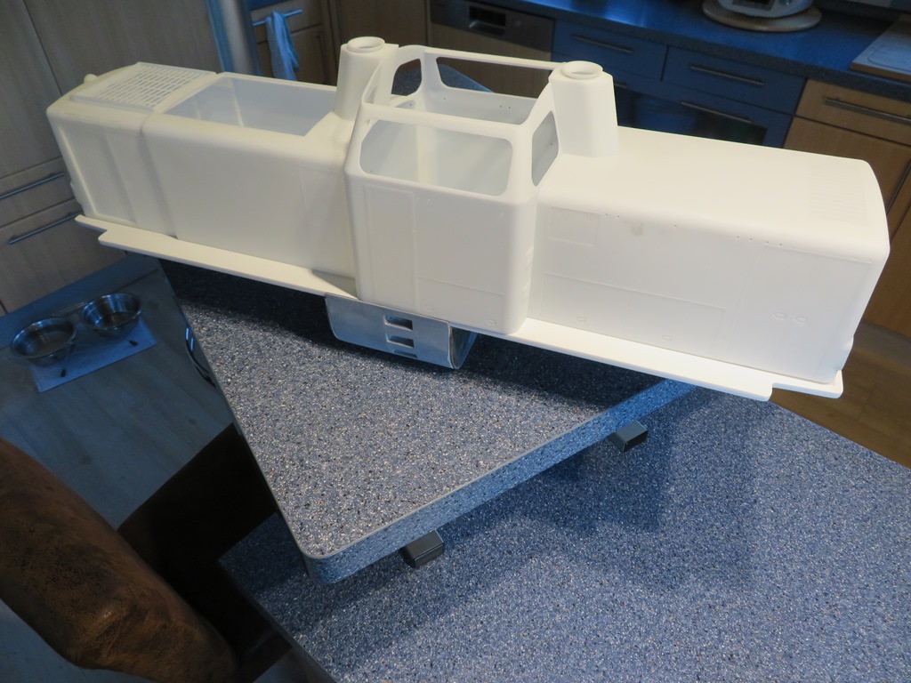 So sieht es dann aus, wenn die Rahmen positioniert sind. Nun kann man auch ein paar Haltegriffe mehr an der Lok erkennen.