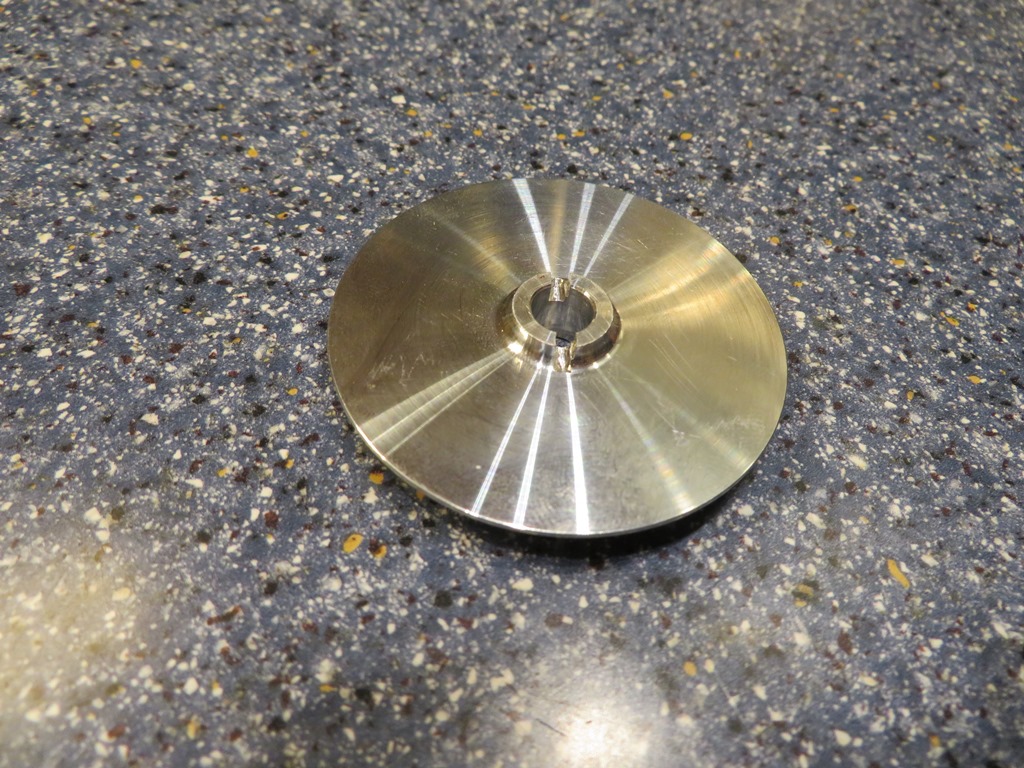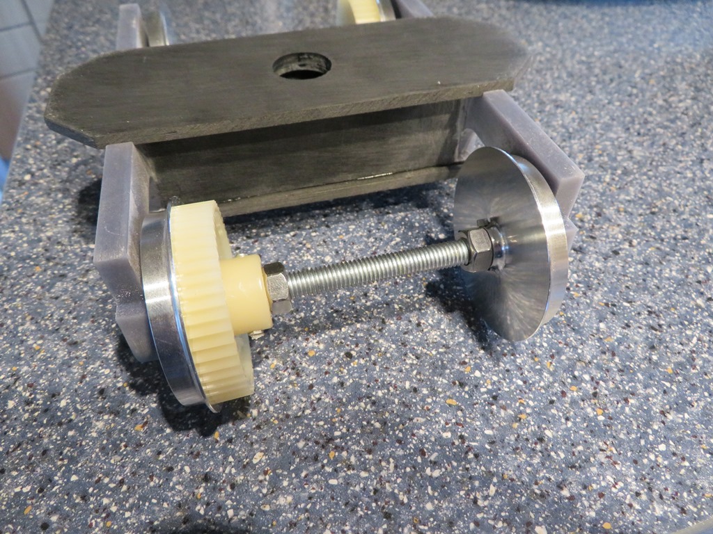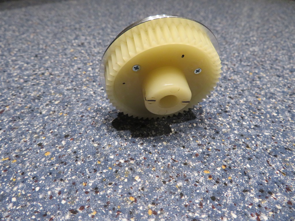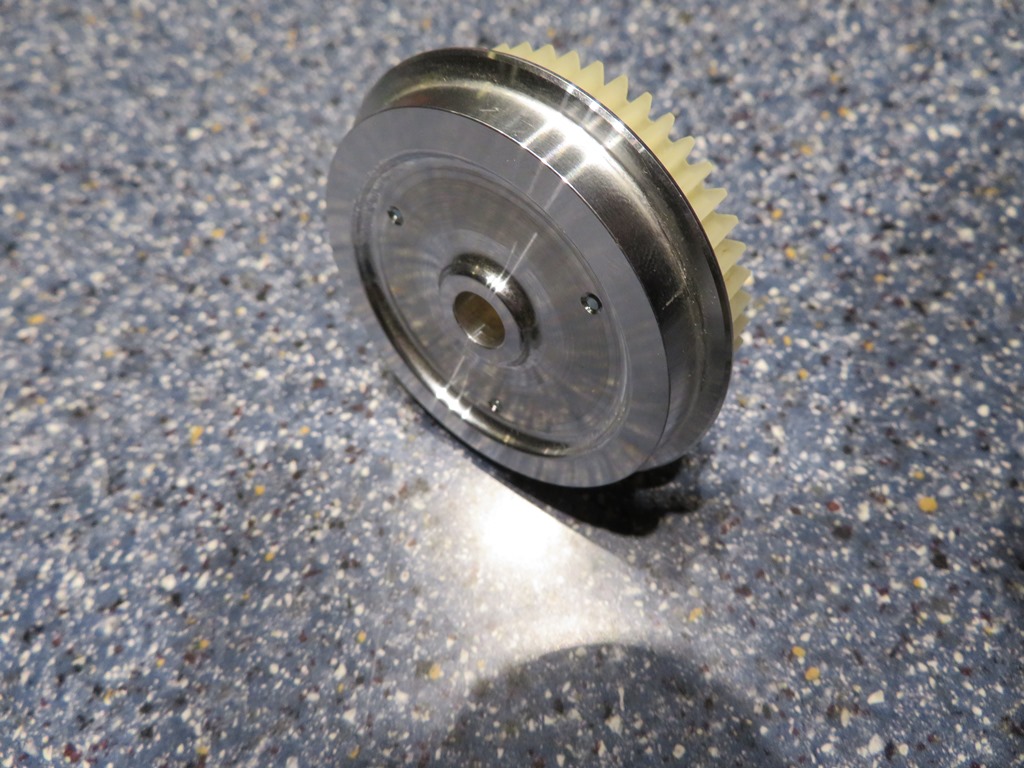 Hier das fest verschraube Antriebsrad mit der Welle.