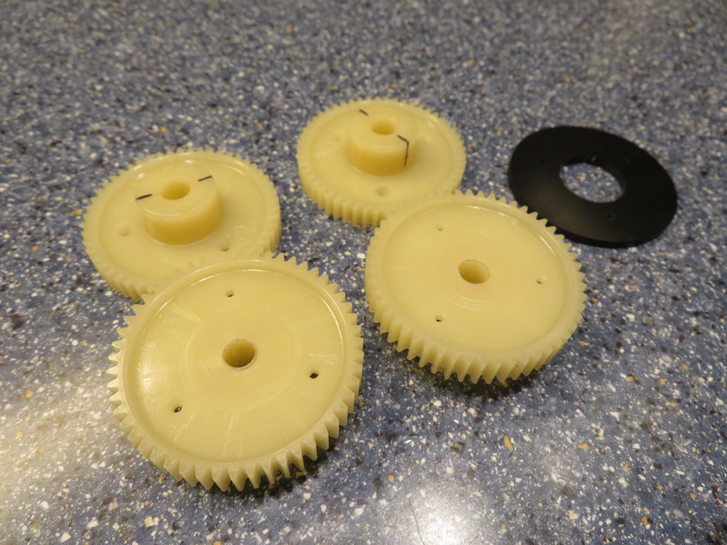 Ebenfalls wurden mit der Schablone auch die Löcher in die Antriebszahnräder deckungsgleich gebohrt.