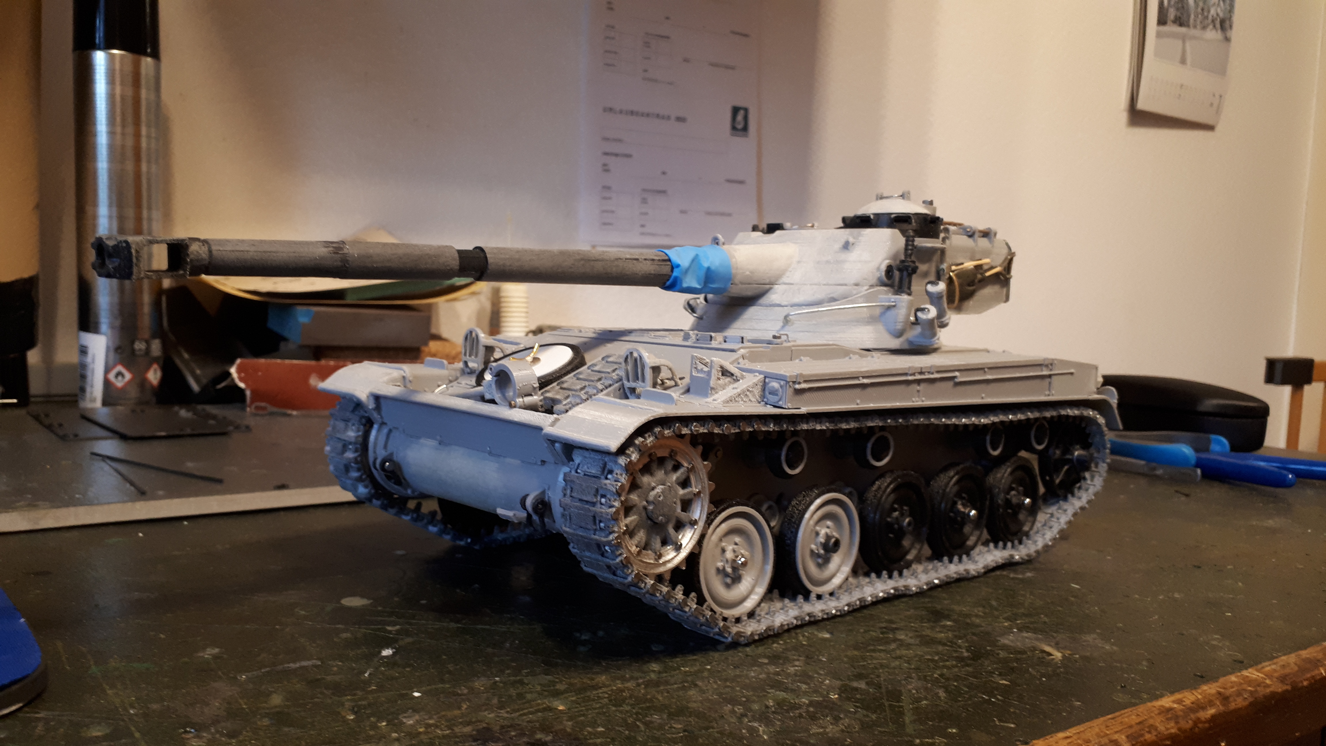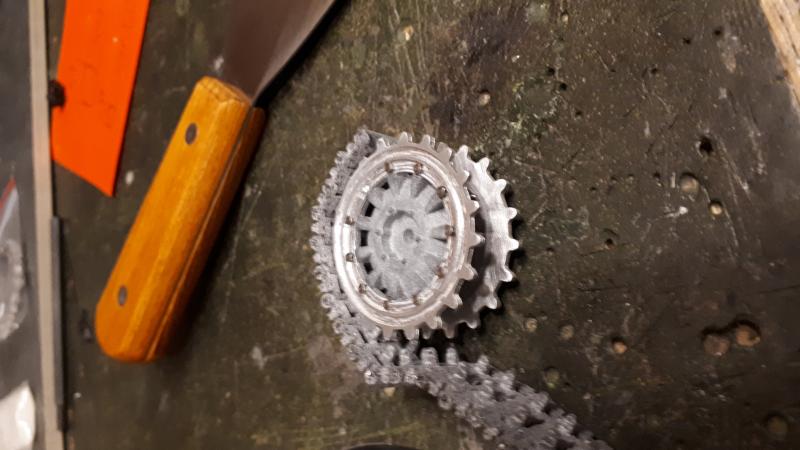 Hallo miteinander, hab mich mal an einem gedruckten Panzer versucht. Die Stl Datei wurde erworben und mit eigenen Zeichnungen komplettiert. Ein Teil (bzw 4 teiligerKettenspanner) wurden zweg's Stabilität in Alu gedruckt.