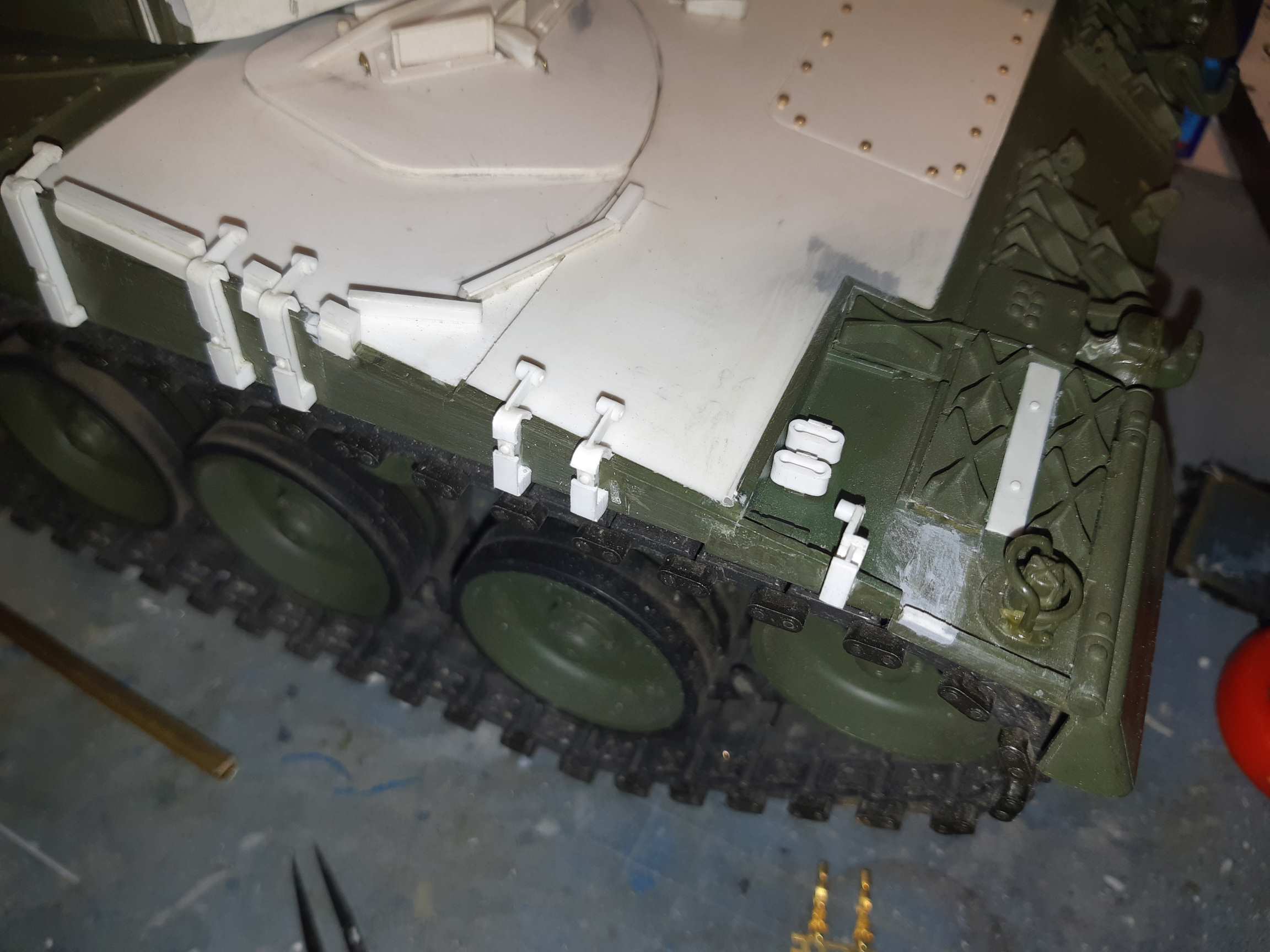 Wie schon beschrieben ist das wichtigste die Schwingarme und die Kettenspanner. Die Originalschwingarme aus Plastik bekommen im laufe der Zeit (ca- 3-5 Jahre) Risse . Auch wenn du nicht fährst und der Panzer aufgebockt ist. Daher sind die Metallschwingen ein Muß.