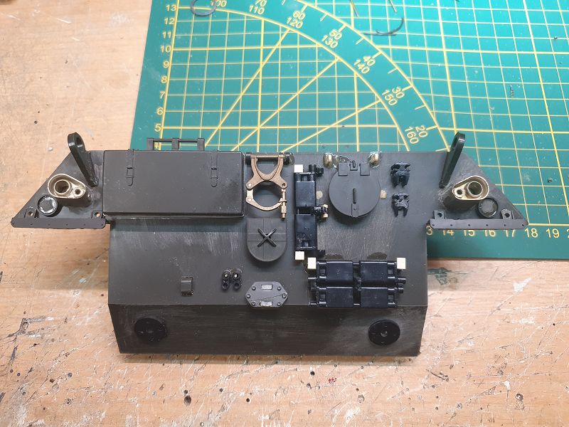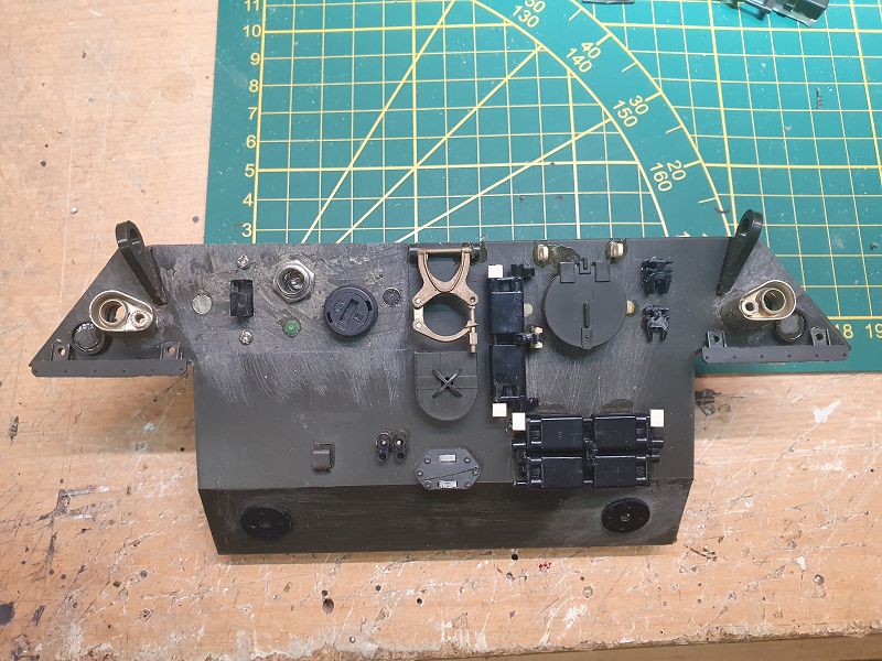 weiter mit der Heckwand und Hauptschalter, Sicherung, Kontrolllampe und Ladebuchse ...