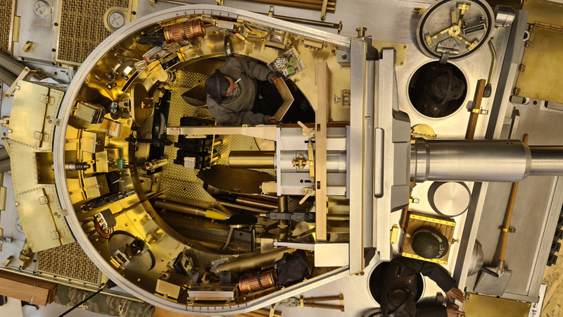 In Saumur wird der Tiger I (oder A) einer vollständigen Restaurierung unterzogen, es ist ein ehrgeiziges, komplexes und teures Projekt. Wir können das Geräusch des echten Motors aufnehmen, aber ich hoffe, dass ich meinen zuerst fertig habe. Ich habe es zum ersten Mal gesehen, als ich zwanzig Jahre alt war (vor 48 Jahren...), und 2019 hatte ich eine Sondergenehmigung, um hineinzugehen, um Messungen an meinem Turm vorzunehmen. Jetzt ist es nicht mehr möglich, auch nur 10cm näher zu kommen, weil jeder Angst hat, dass man sich einen Finger verdreht und es zu einem Prozess kommt...