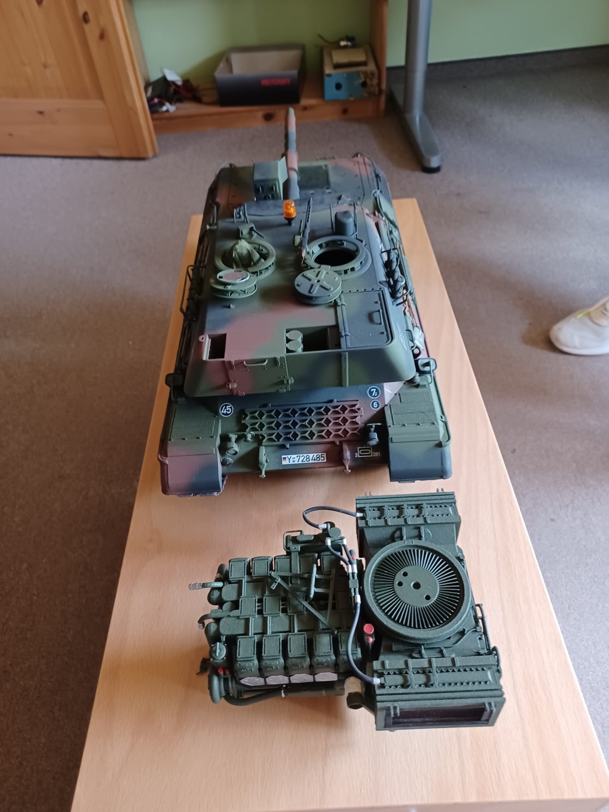 Es gibt noch einen weiteren Leo1 mit Gußturm der ohne Elektrik/Antriebe etc. ist aber tlw. angedeutetem Innenraum (\\\"gezogener Motor\\\")