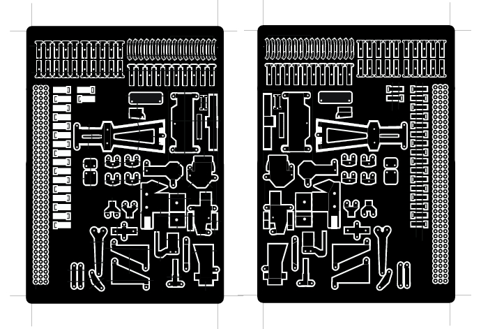 In der gespiegelten Seite werden nun die Haltestege eingezeichnet , die die Teile nach dem Ätzen im Rahmen halten sollen.