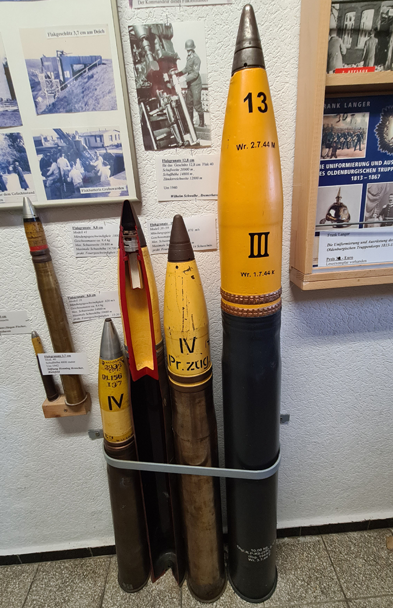 bei meinem Besuch in Norddeutschland konnte ich diesmal auch den Flakleitstand in Grebswarden besuchen. Nach anfänglich leichter Skepsis (siehe 1. Bild) wurde das dann doch zum Erlebnis. Leider hatte ich wieder mal zu wenig Zeit, daher nur Bilder zur Munition, die mich besonders interessiert hat: