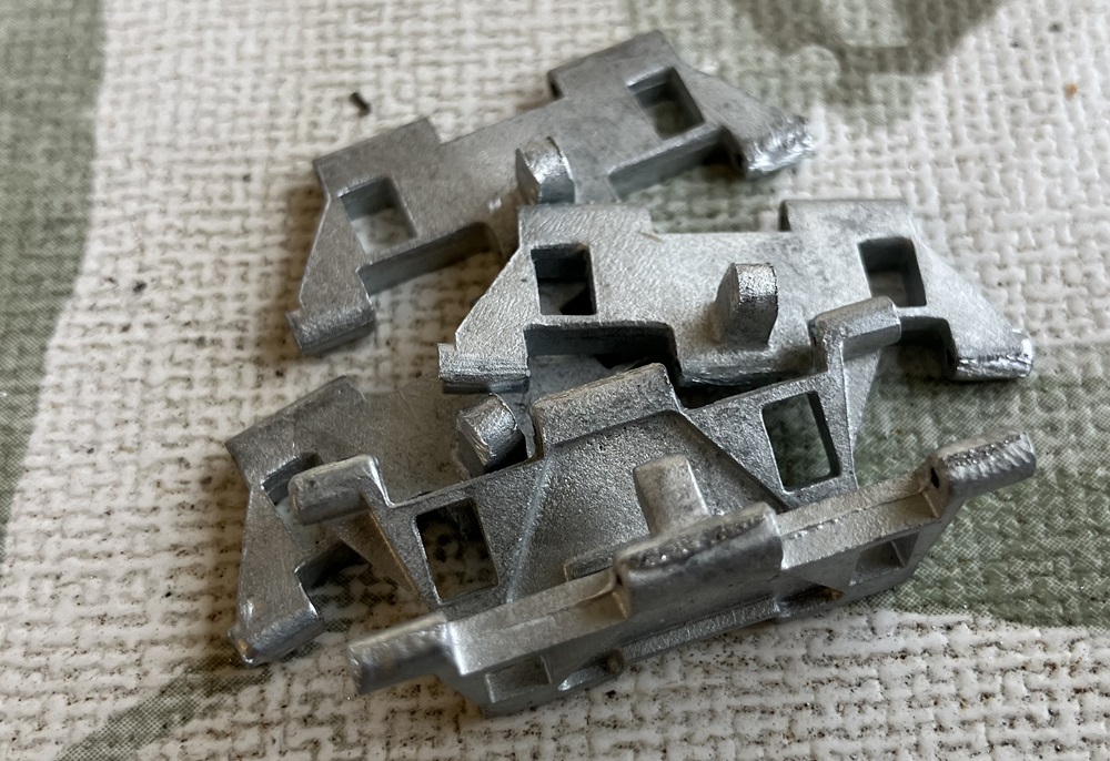 Die Ketten sind zusammen. Die Gussqualität (Zink) ist ordentlich, aber Grate gibt es halt immer.