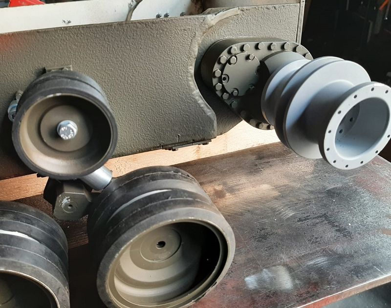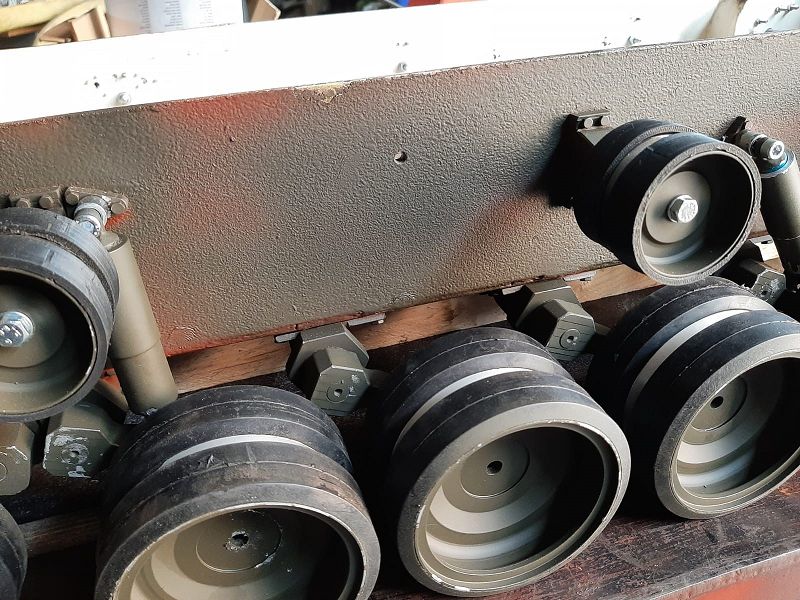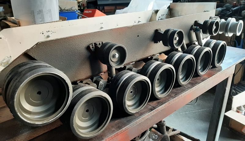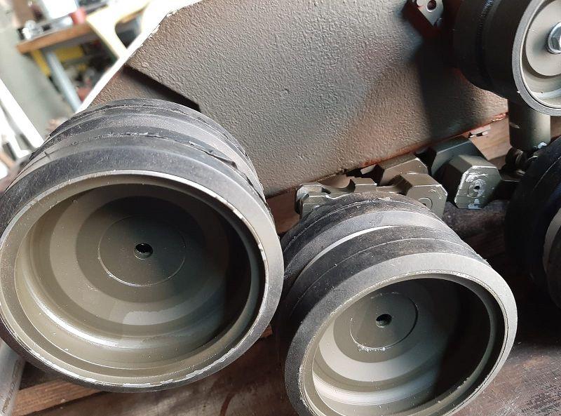 Fahrwerk ein wenig weitergebaut: Laufrollen gesteckt.