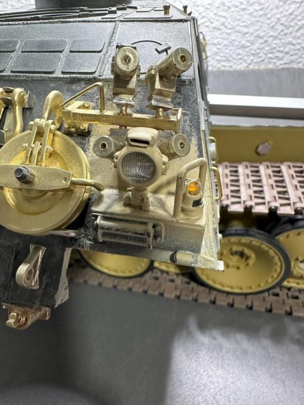 Es gab senkrecht stehende Scheinwerfer in 1/16 für z.B. den BPZ2 oder Biber. Ich selbst hab noch 2 suche aber weitere.