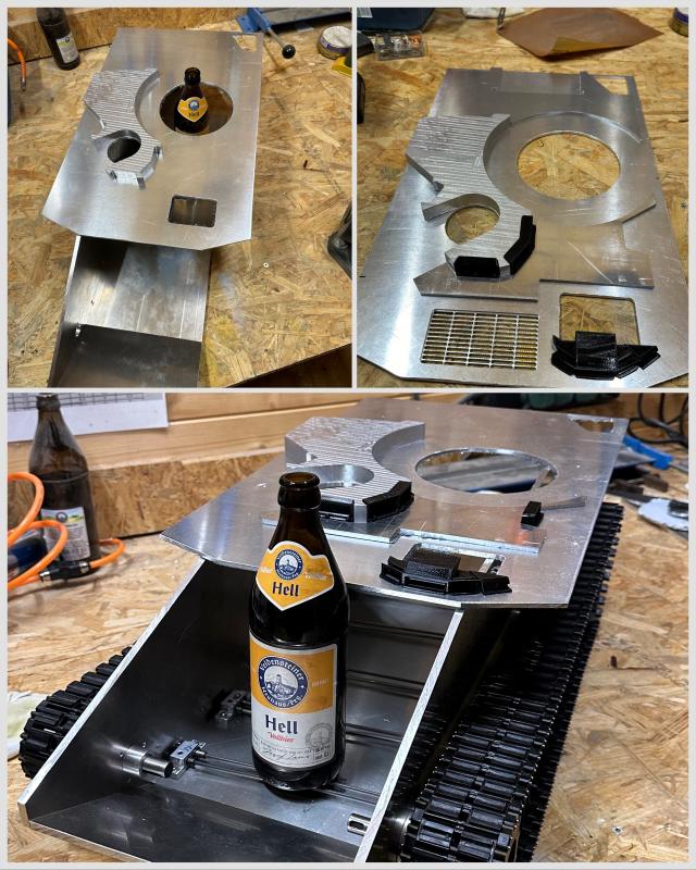 Der Panzer wird aus Alu und PETG gebaut/gedruckt.