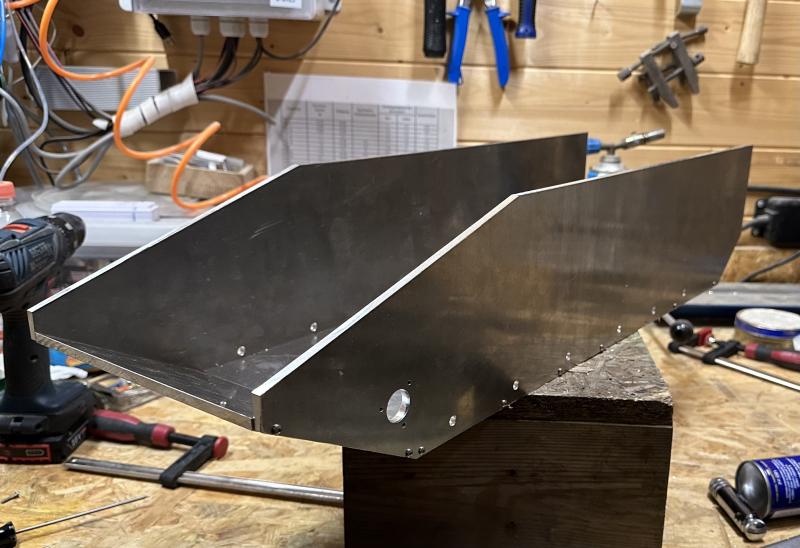 So sieht das Oberteil der Wann aus. Es ist aus 4mm Alu gefertigt. Die Löcher, Öffnungen und anderen Teile habe ich auch auf der CNC gefräst.