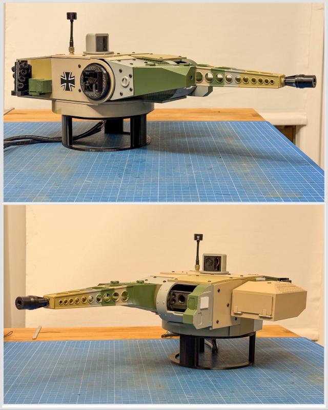 Die ersten Teile vom Turm sind montiert. Den Rohrwiegemechanismus koppel ich mit einem Riemenantrieb an die Richtschützenoptik. Da soll dann eine FPV Kamera rein.
