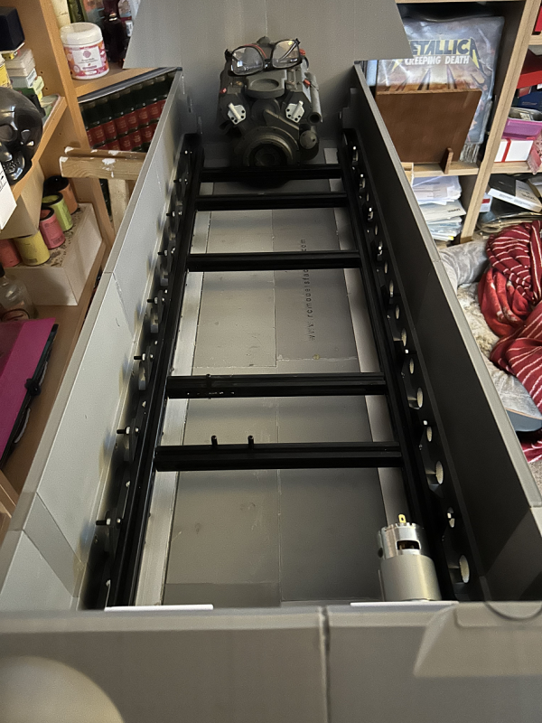 Ich dachte mir wenn ich schon eine Art Leiterrahmen mache, dann für die Zukunft gleich mit Aufnahme für ein Fahrwerk das