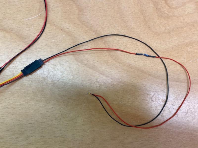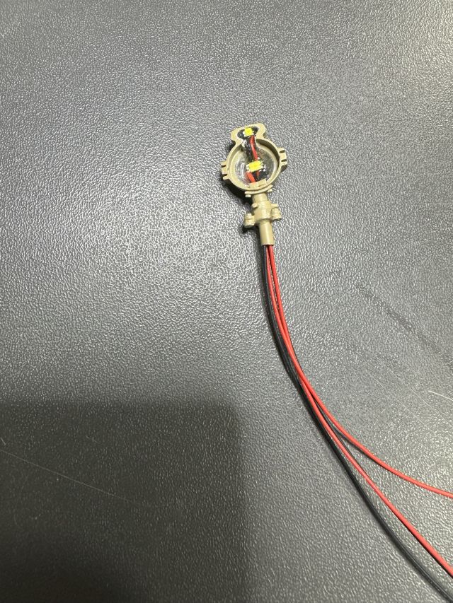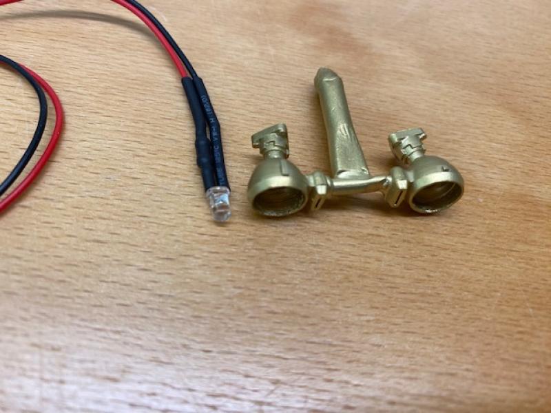 - wie habt ihr das gelöst ? der Scheinwerfer ist doch relativ klein, und die LED mit den angelöteten Widerständen eher dick....