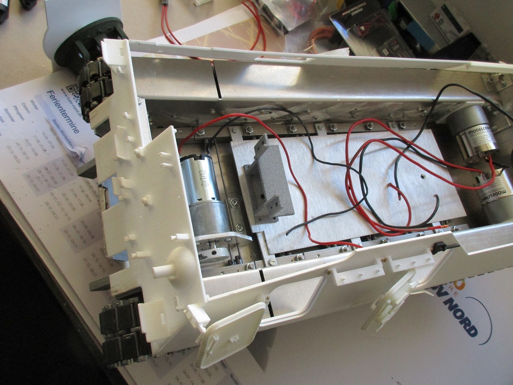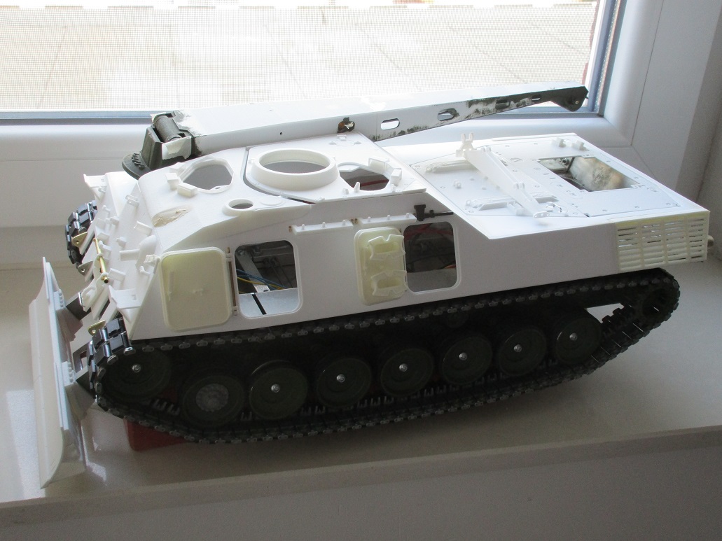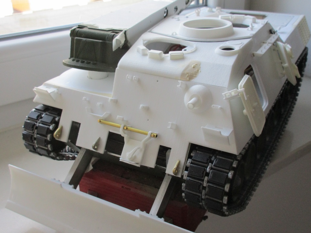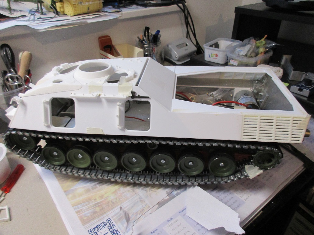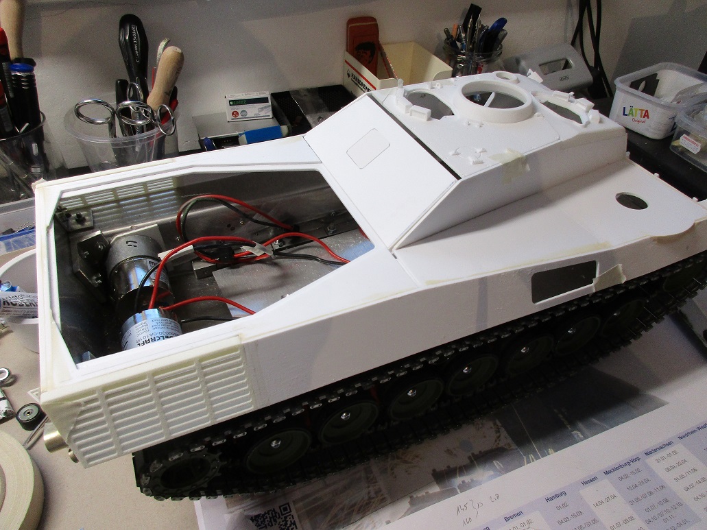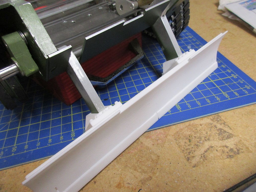 Gefällt mir gut was du da machst. Ein Tipp noch: Mach doch eine Abdeckung innen in der Unterwanne, damit der "Dreck" nicht im Panzer landet, wenn du mir dem Räumschild mal spielst.