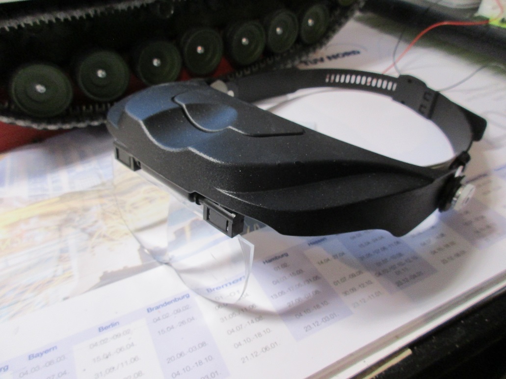 Ein Update. Zuerst wollte ich mal ein mittlerweile fast unverzichtbares Hilfsmittel zeigen- meine Lupenbrille. Sie hilft doch sehr!