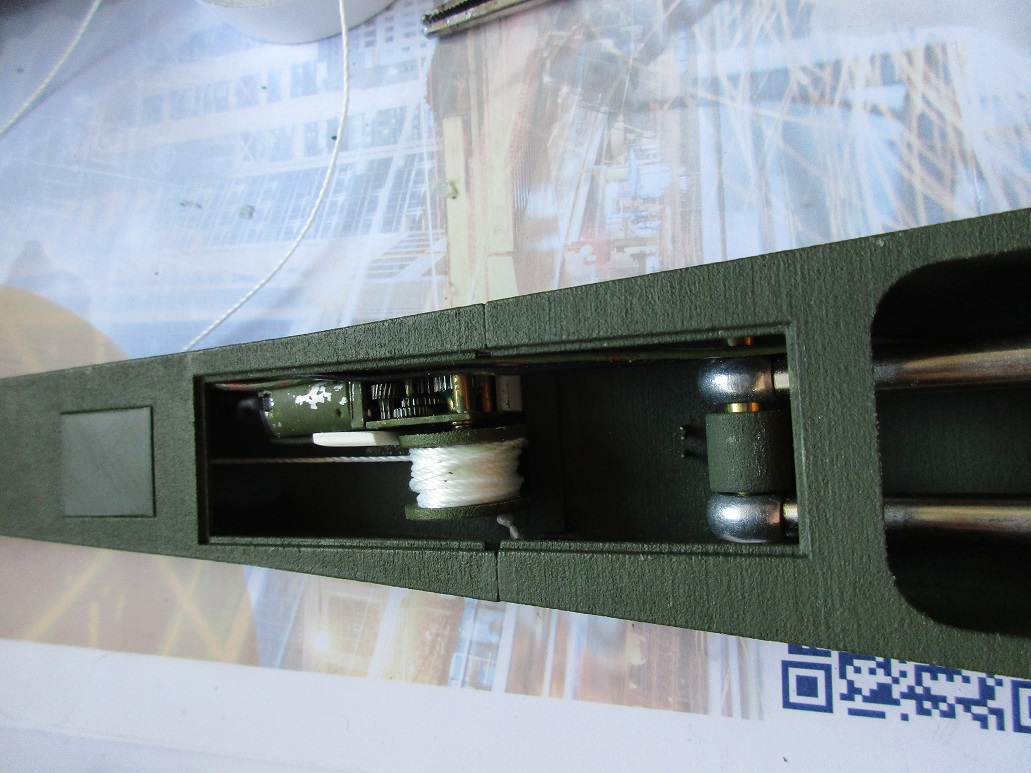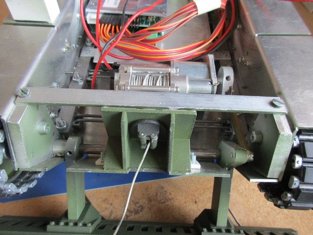 Mittlerweile wurde der Berge lackiert. Gestern habe ich den Kran und die "Crawler" Winde in Betrieb genommen. Dies hab ich mit ein paar Bildern dokumentiert. Die Oberwanne/ Kasematte habe ich hinter der Befestigung/ Basis des Krans verschraubt. Ich hoffe so kann ich auch etwas schwerere Lasten (Motor) heben ohne das der Aufbau sich verschränkt.