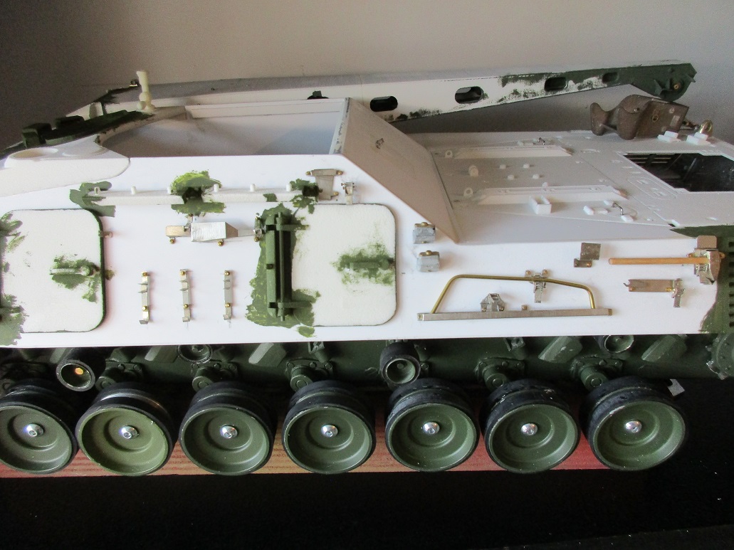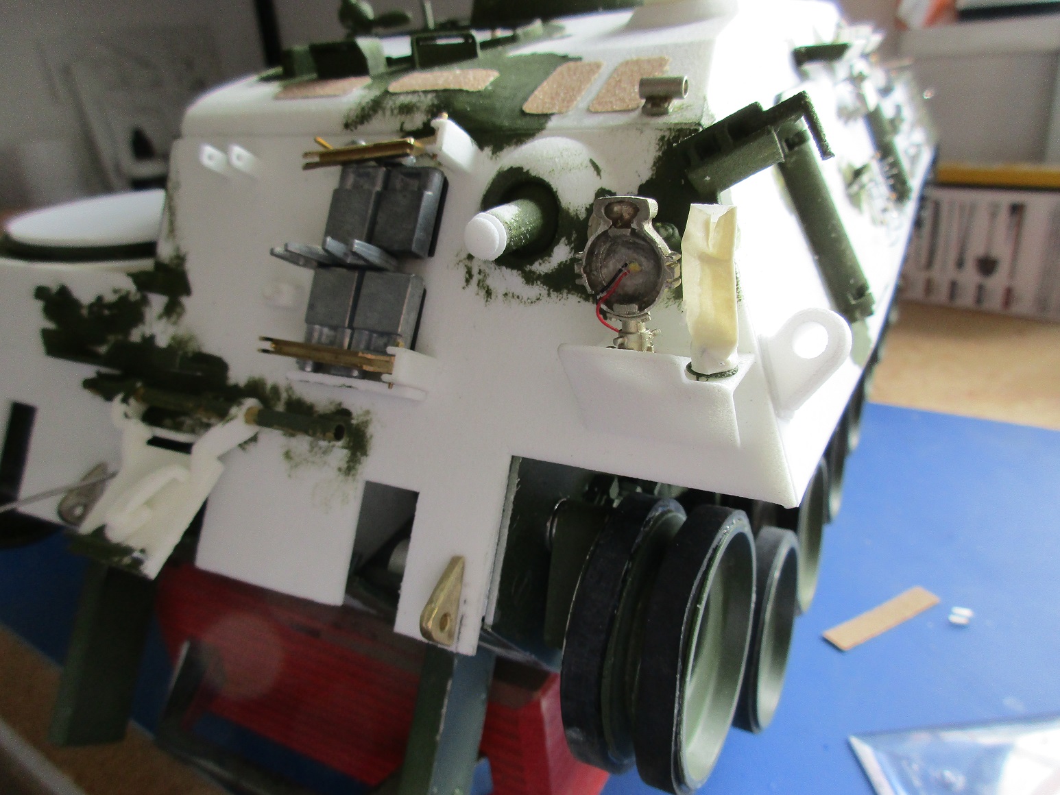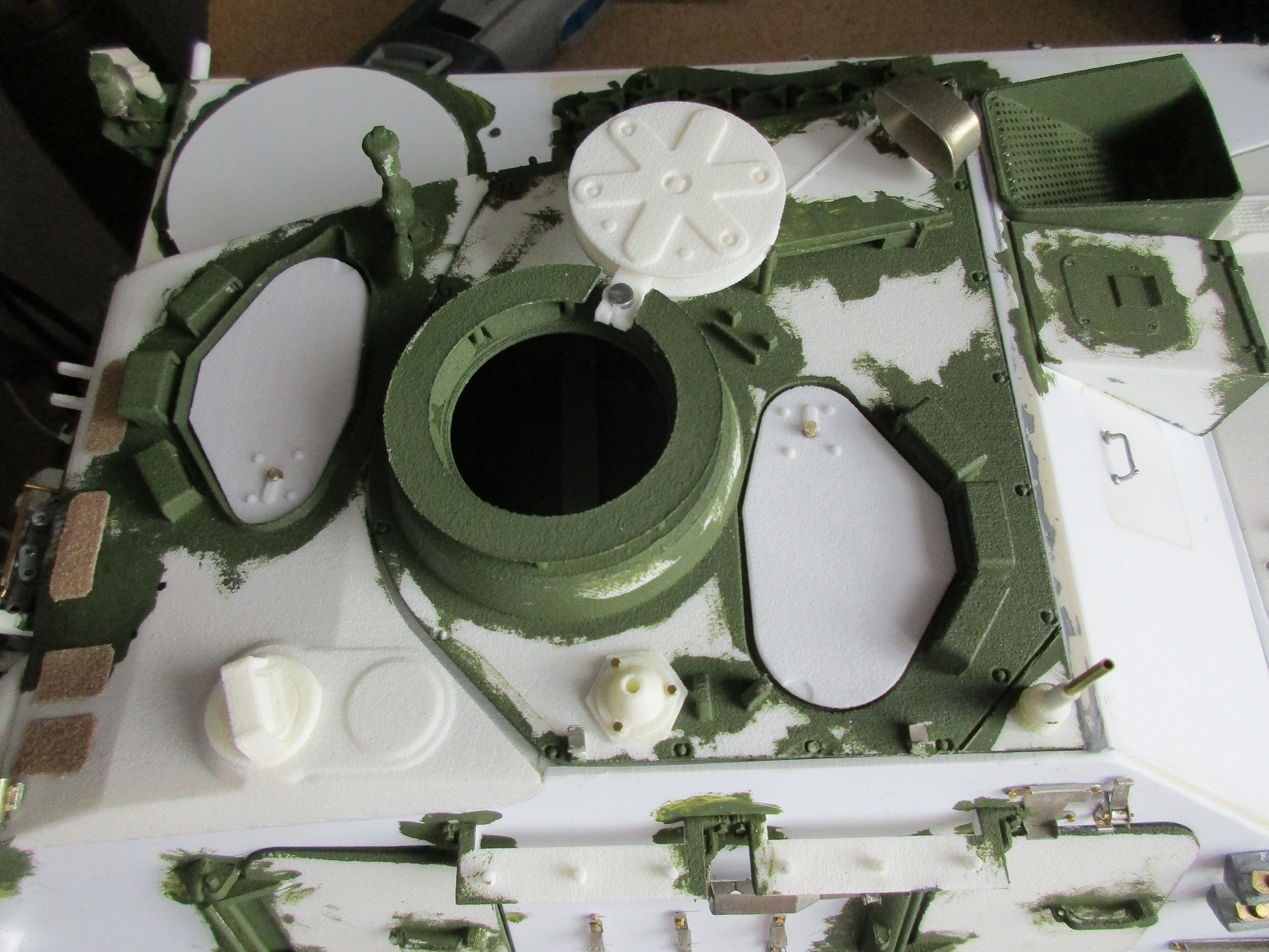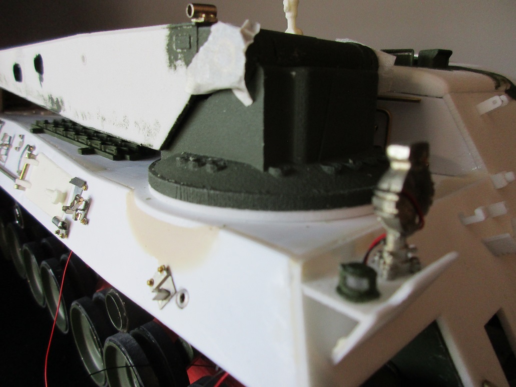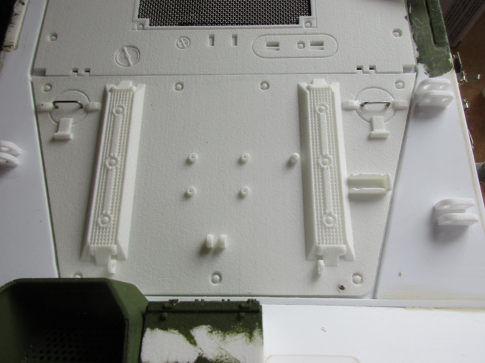 Ich denke jetzt ist alles dran was geht und soll. Werd ich mal mit lackieren beginnen. Ich würde gern das tarnschema maskieren bin aber skeptisch wegen der vielen Wkzg.-aufnahmen etc. Schaun mer mal.