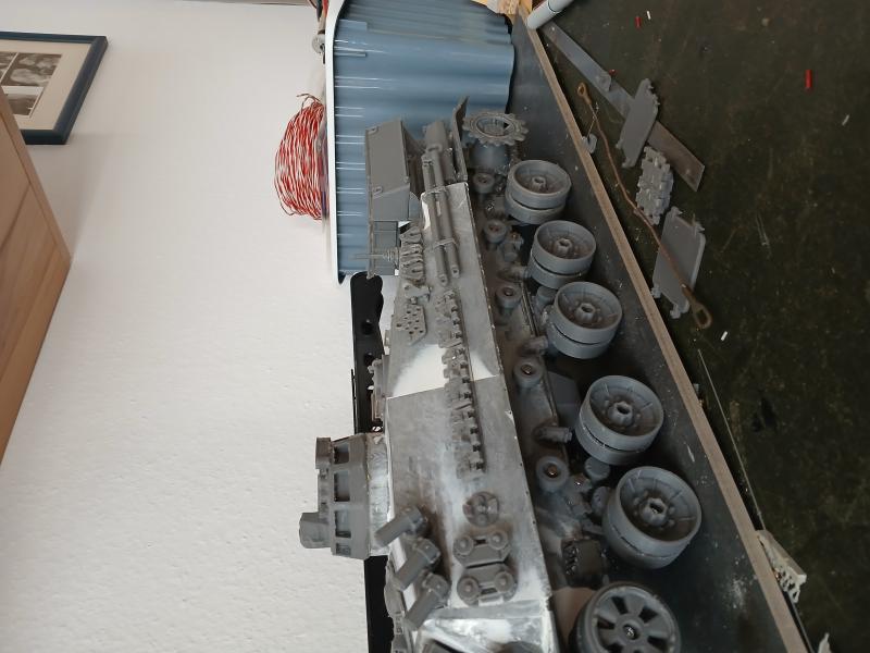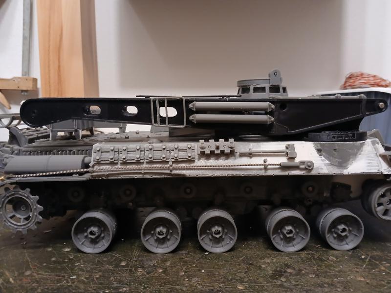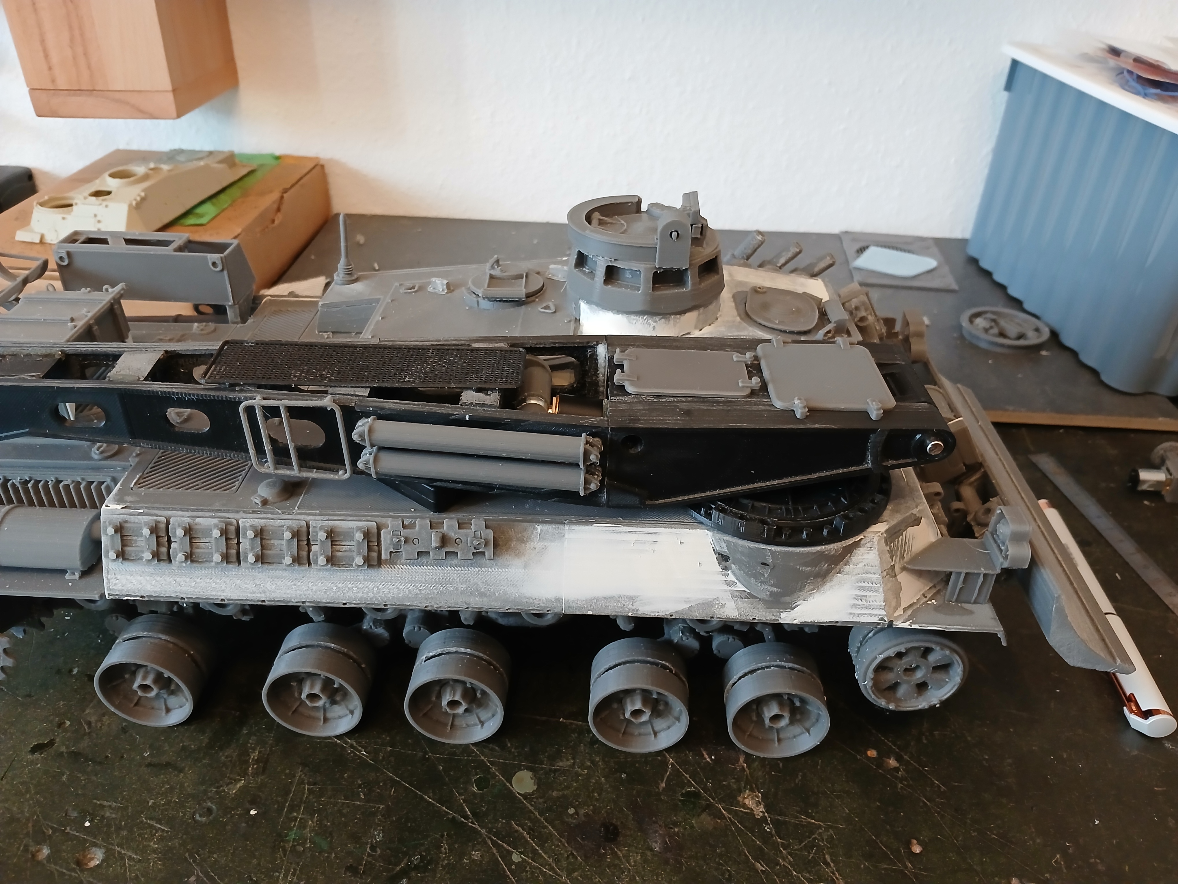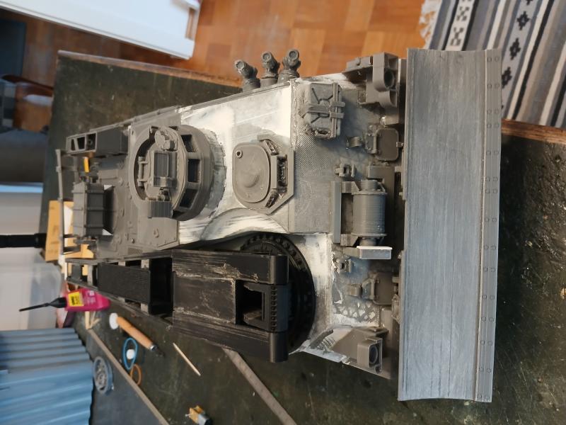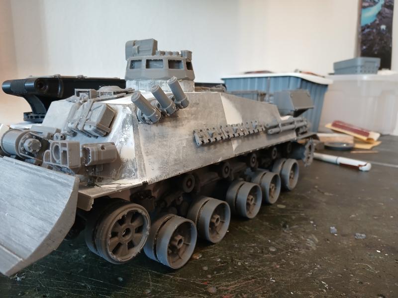 An der Frontseite sind jetzt noch die Scheinwerferhalter nebst Scheinwerfer und noch ein Kanister dazu gekommen.