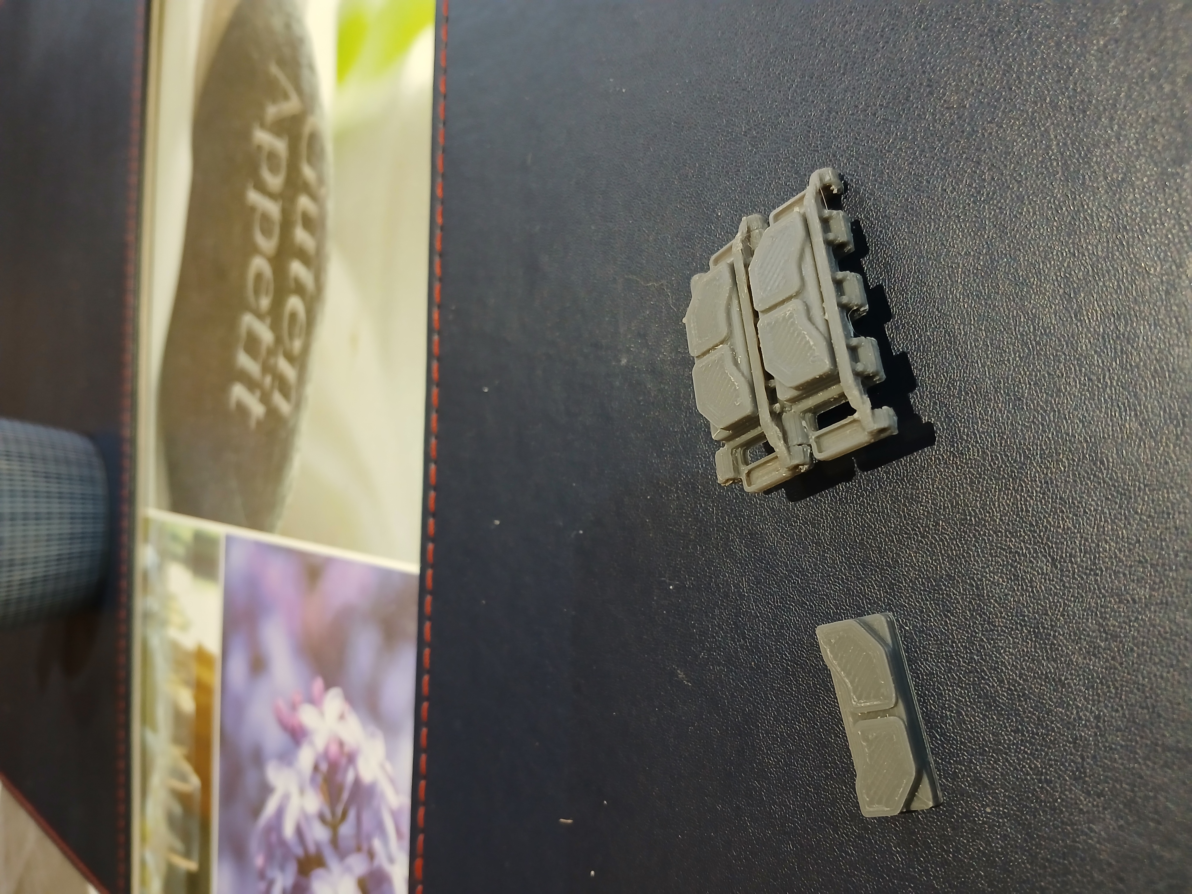 Hallo miteinander, hab mal Kettenglieder im Volldruck erstellt. Polster ist separat gedruckt. Diese werden dann mit schwarzen Filamen erstellt.