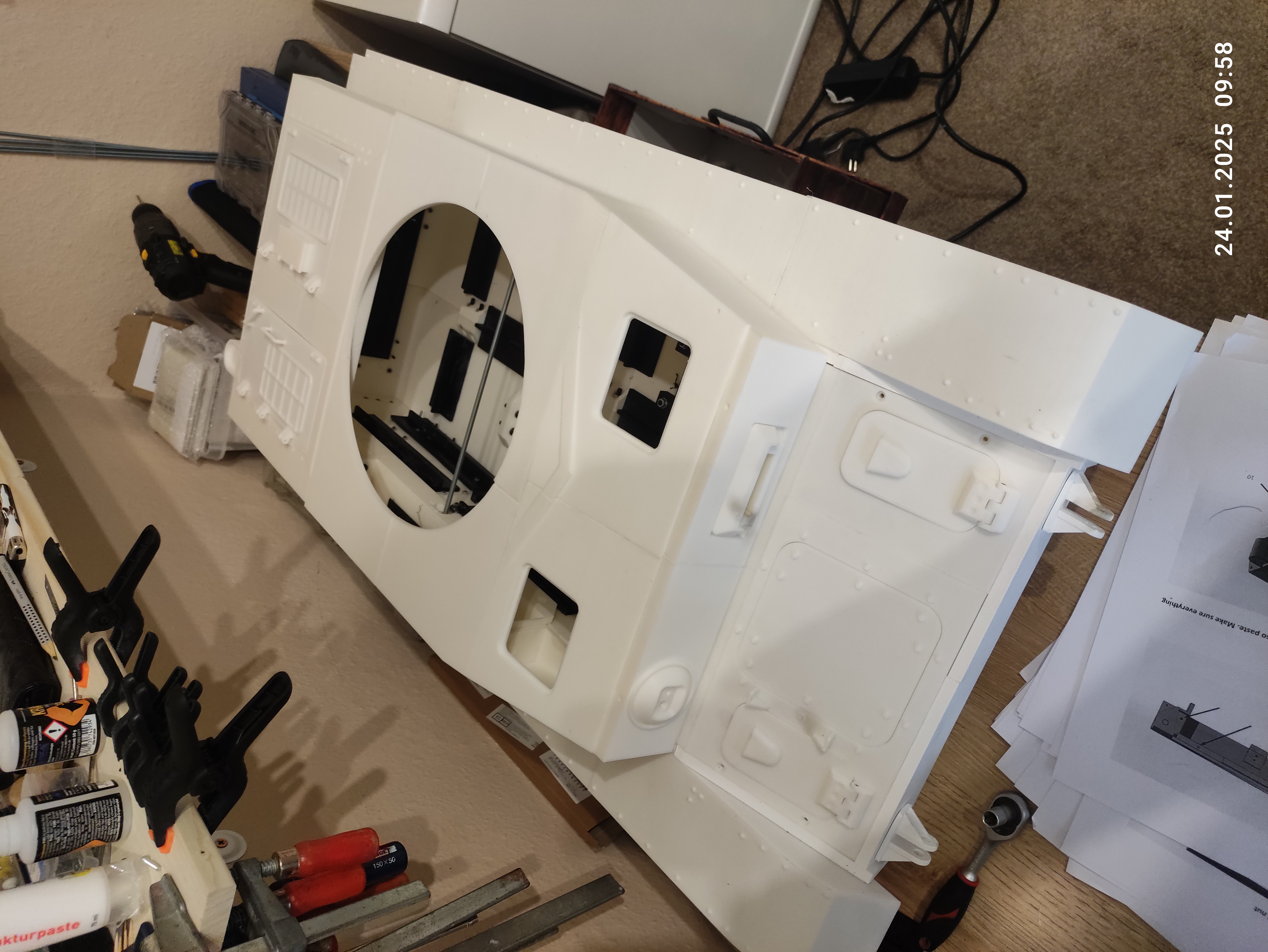 Die Oberwanne ist soweit zusammengebaut. Hier muss wie bei der Unterwanne noch einiges gespachtelt und geschliffen werden.