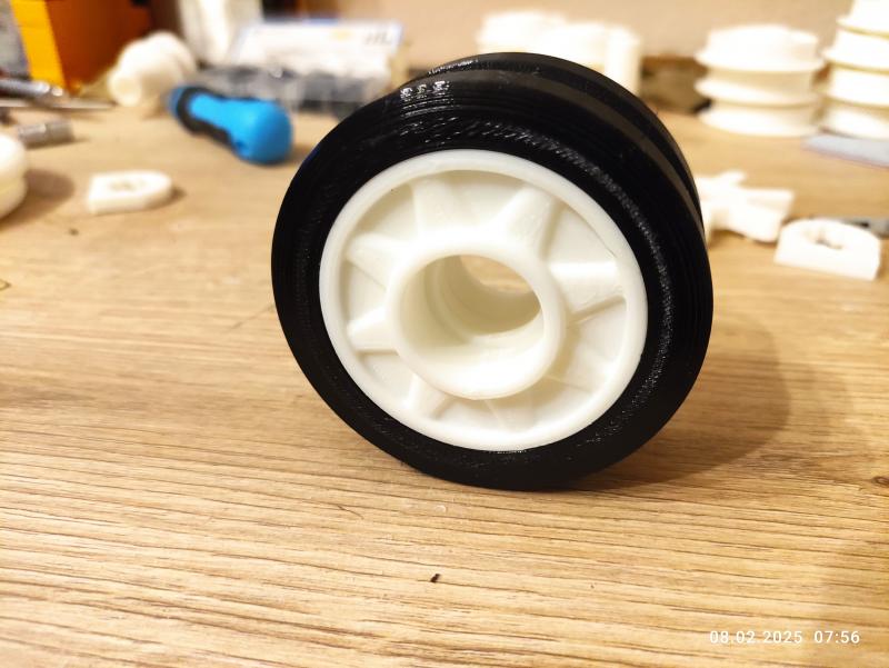 Die Räder wurden auch mal Probeweise montiert, die Gummis sind aus TPU. -- Königstiger PorscheTurm 1:10 im Bau, Panzer IV H 1:6 im Bau