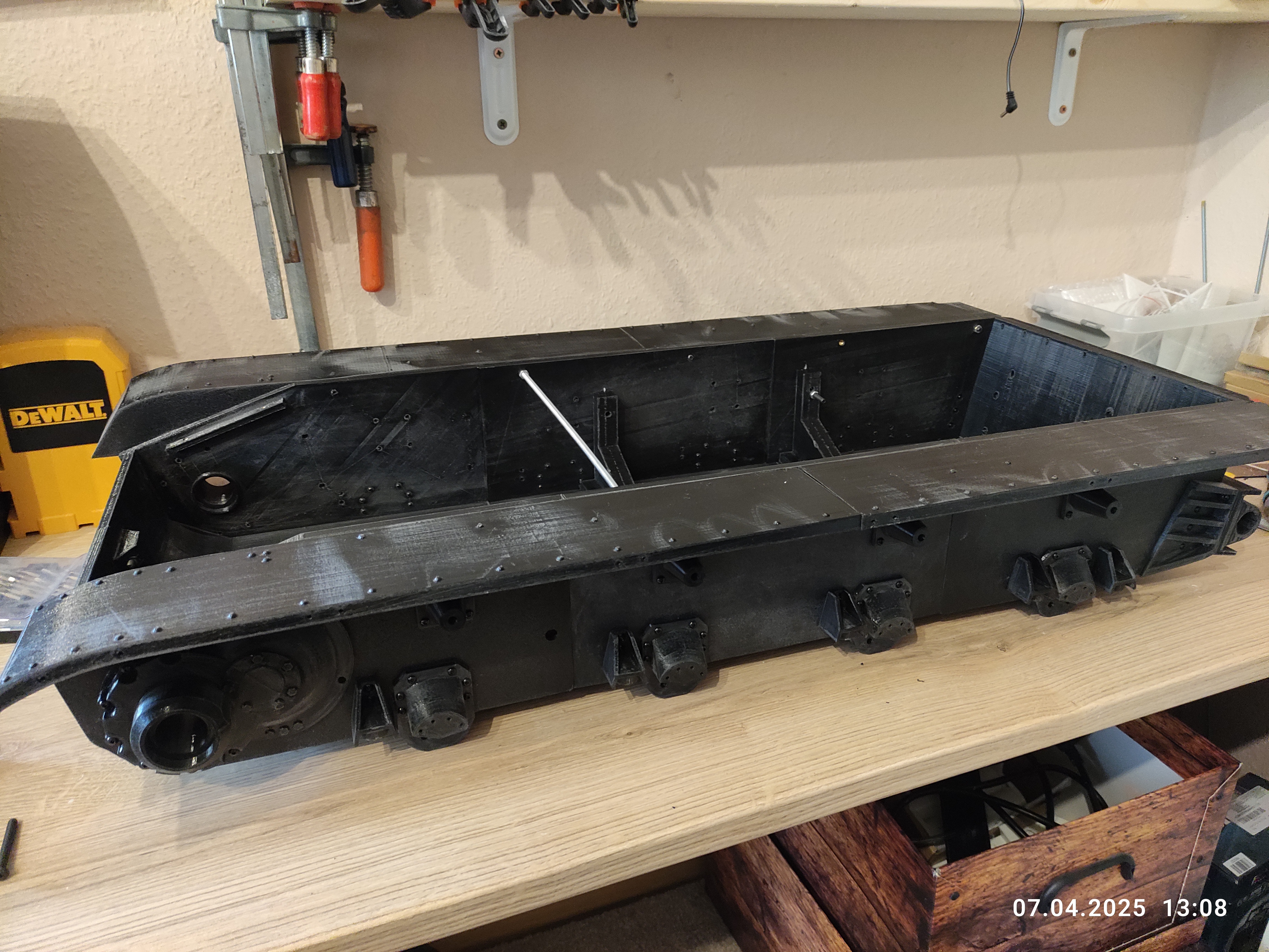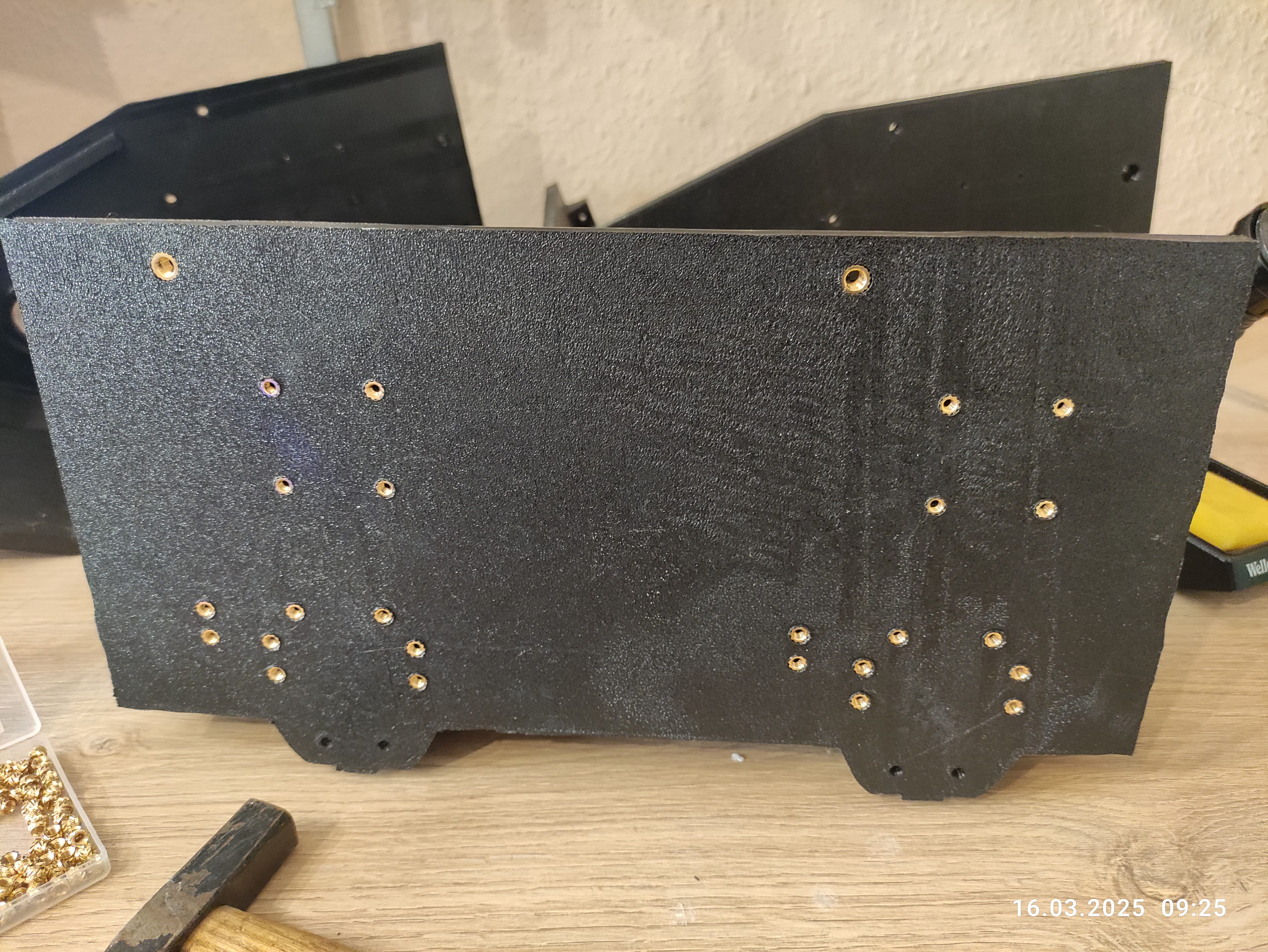 Da mir die ganzen splits in den Teilen aufgrund der Druckbettgröße nicht gefallen, kurzerhand nen neuen großen Drucker gekauft. Also alle Teile der unter und Oberwanne neu drucken. Für die Stabilität und Haltbarkeit der Schraubenlöcher, habe ich mir Einschlagmuttern gekauft und diese eingeschmolzen. -- Königstiger PorscheTurm 1:10 im Bau, Panzer IV H 1:6 im Bau