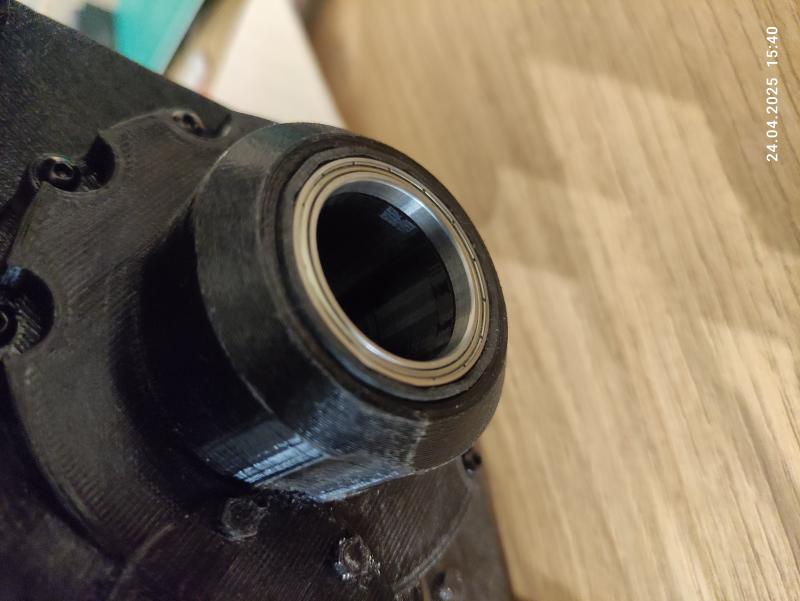 da ja leider die Normteile aufgrund der Skalierung des Modells auf 1/6 nicht mehr passen, habe ich die Außenseite der Antriebsachse als Mass genommen und Einsätze drumherum konstruiert l. So liegt die Achse sauber im Lager.