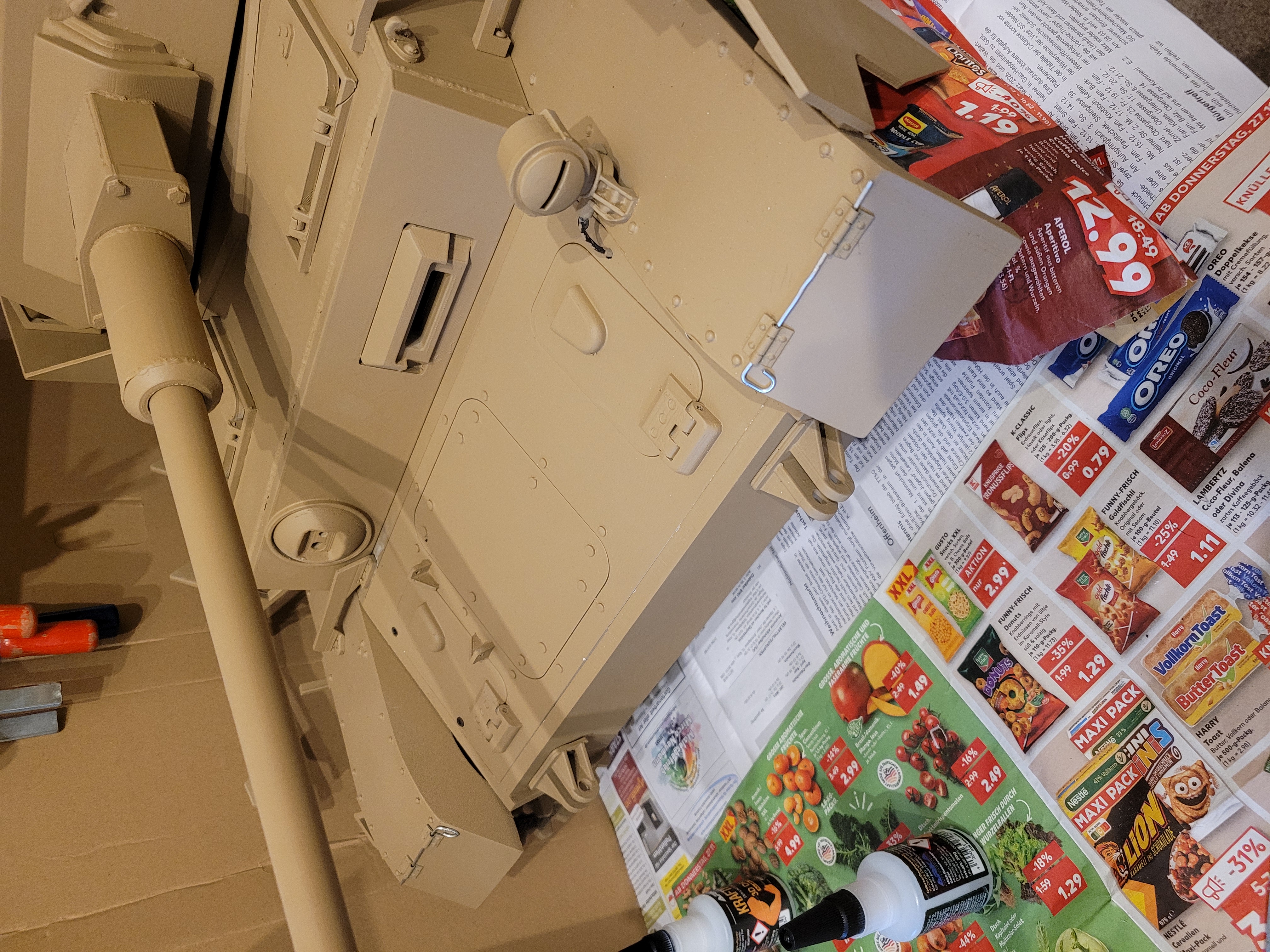 Und die zweite Farbschicht. -- Königstiger PorscheTurm 1:10 im Bau, Panzer IV H 1:6 im Bau