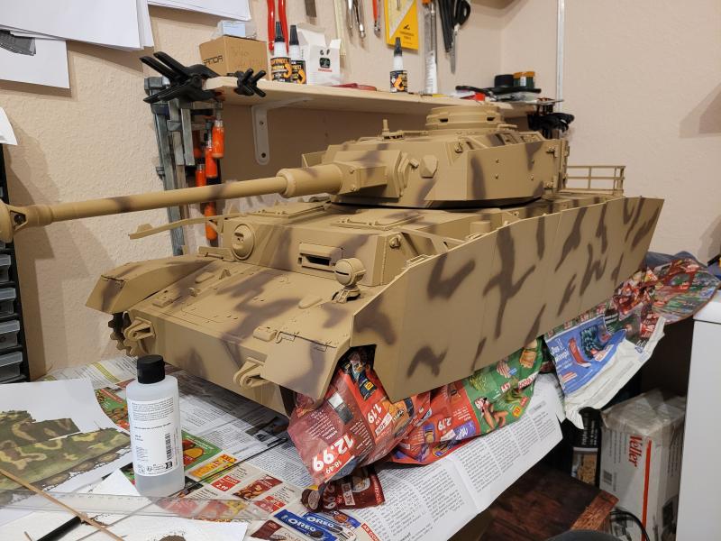 Erste Schicht des Tarnmusters. -- Königstiger PorscheTurm 1:10 im Bau, Panzer IV H 1:6 im Bau