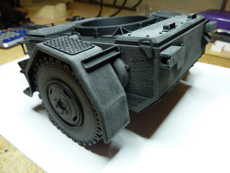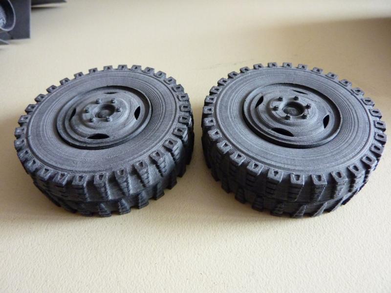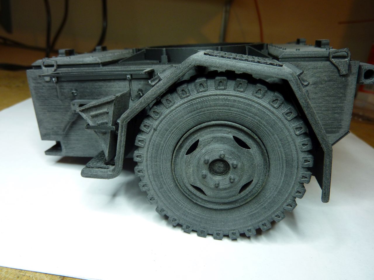 Die Reifen sind gedruckt und da es ein Standmodell wird aus PLA.