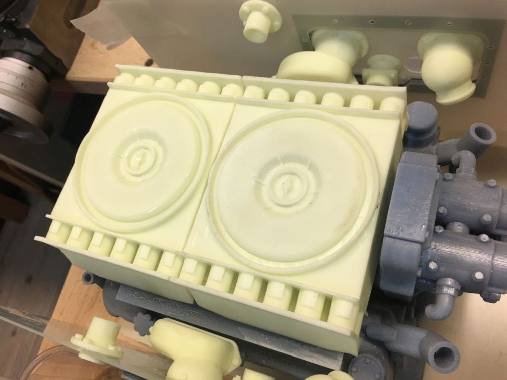 Vom Motorraum selbst gibt es einiges an Zeichnungen und guten Bildern. Wie immer ist alles zuerst im CAD entstanden. Die Wände sind aus 1mm GFK Plattenmaterial entstanden, die Details in 3D Druck. Der Motorblock ist im unteren Bereich etwas gekürzt um den Einbau einfacher zu gestalten. Unterhalb der Zylinderbänke kann man sowieso nichts sehen.