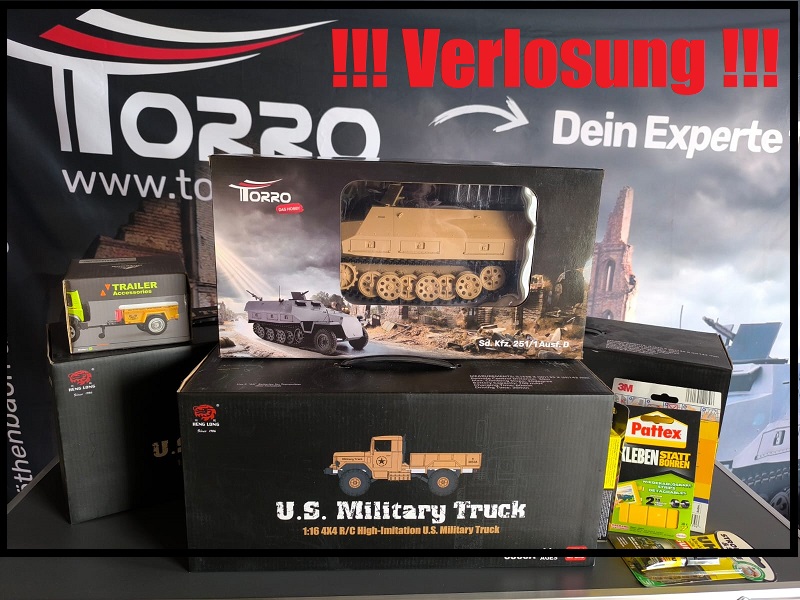 Als Hauptpreis winkt ein nagelneues Sdkfz 251 von Torro in Sandfarbe
