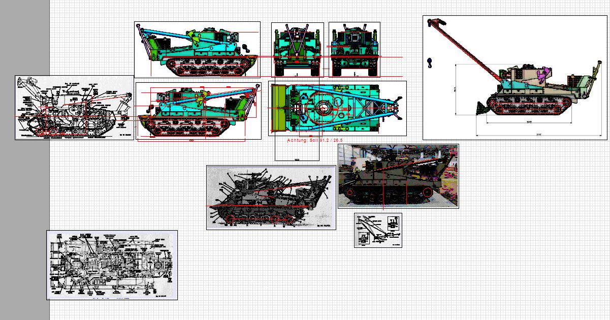 Ich hatte vor mehreren Jahren in Internet mal eine Annonce eines 1/87 Modells mit angehängten Bilddateien gesehen. Die ließen sich noch anständig auf 1/16 skalieren. Erst dachte ich - einfaches Spiel. Letztendlich ist es eine Vorlage. Man muß immer mit Bildern vergleichen. Das Modell ist auch komplizierter wie gedacht. Aber es wird.