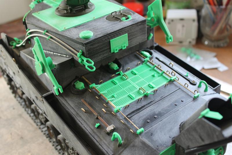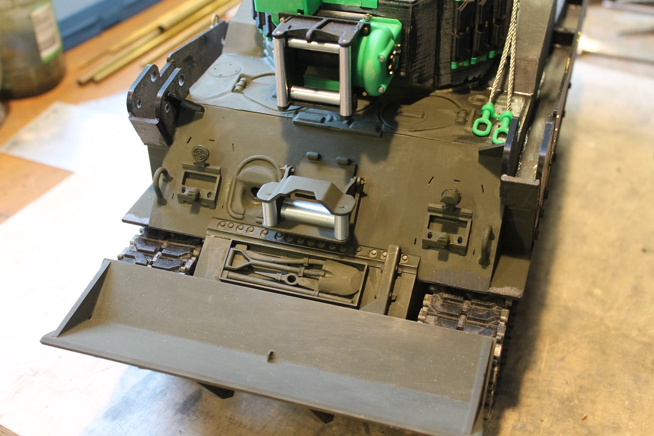 Mehrere Details haben ihren Platz gefunden. Den Abschleppseilen habe ich ein 2 mm Stahlseil spendiert. Ging besser wie gedacht.