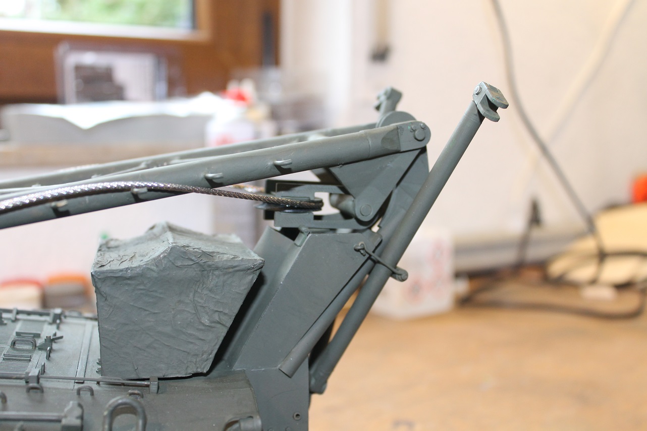 Hier sieht man noch die Auflage-Transportstellung für die Umlenkrolle.
