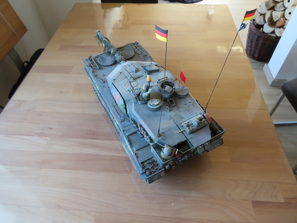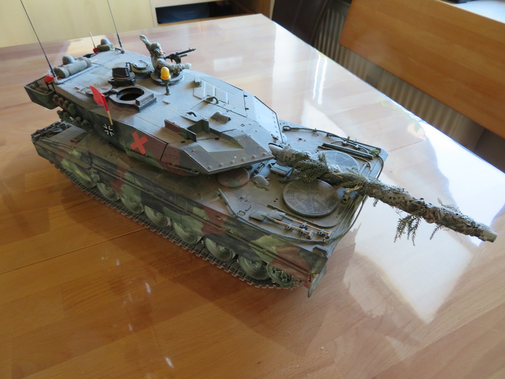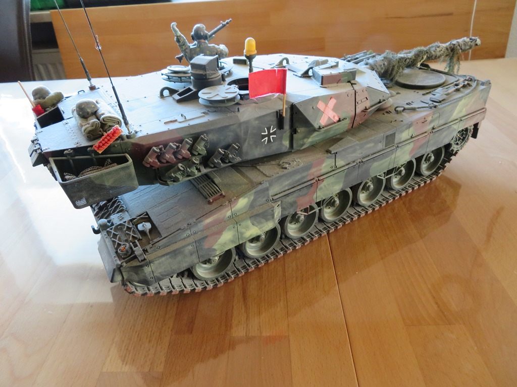 Biete hier meinenTamiya Leopard 2 A6 mit AFV Zubehör Teilen an.