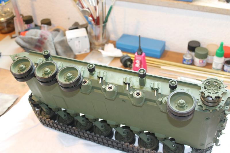 Die Unterwanne mit Minenschutz (geschraubte Variante) und die Verstärkung im Antriebsbereich ist fertig.