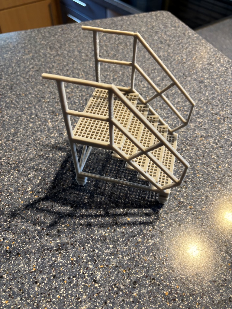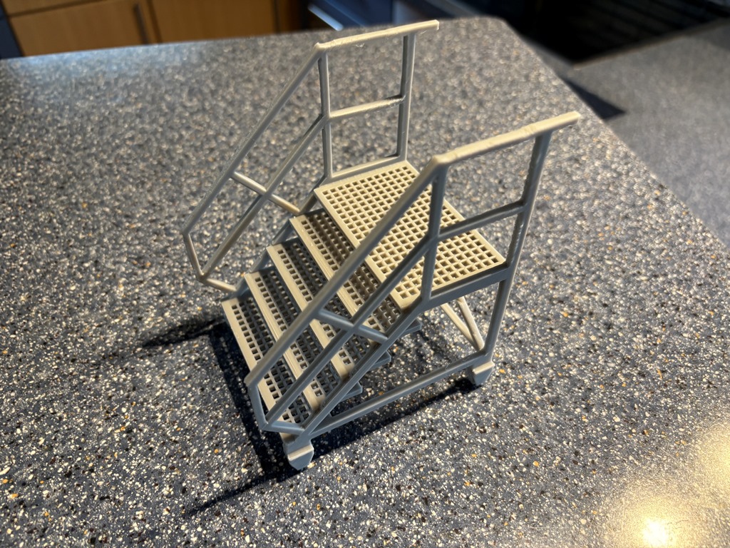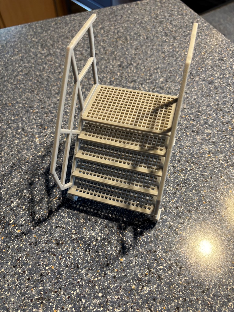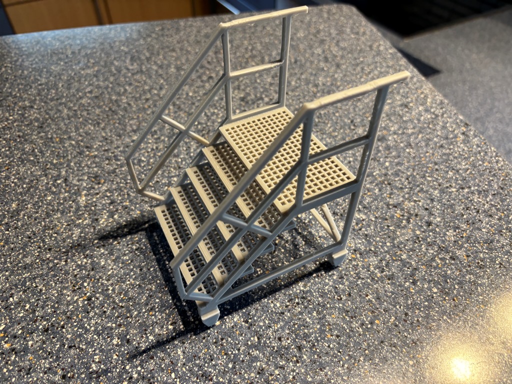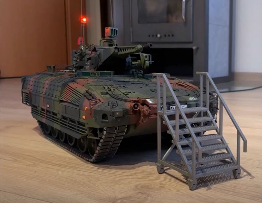 Aufgrund einer Anfrage von einem Modellbaukollegen, habe ich zusätzlich eine Besuchertreppe für den Leopard 2 in einem etwas andere Design gezeichnet und diese extern drucken lassen.