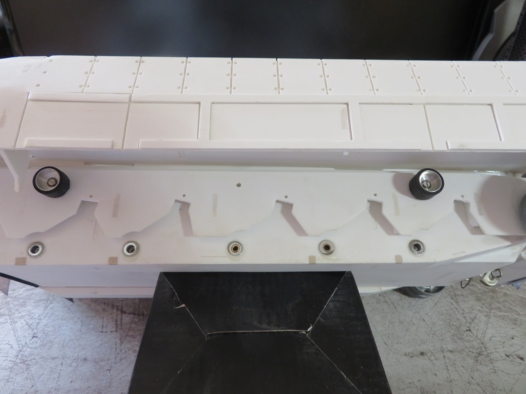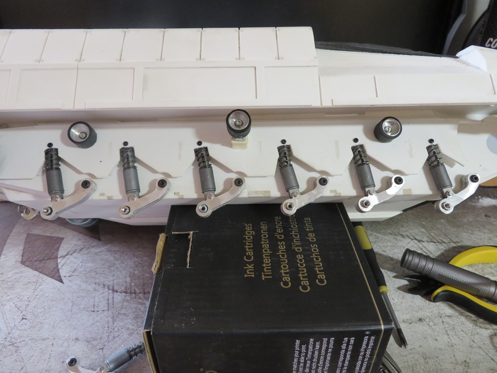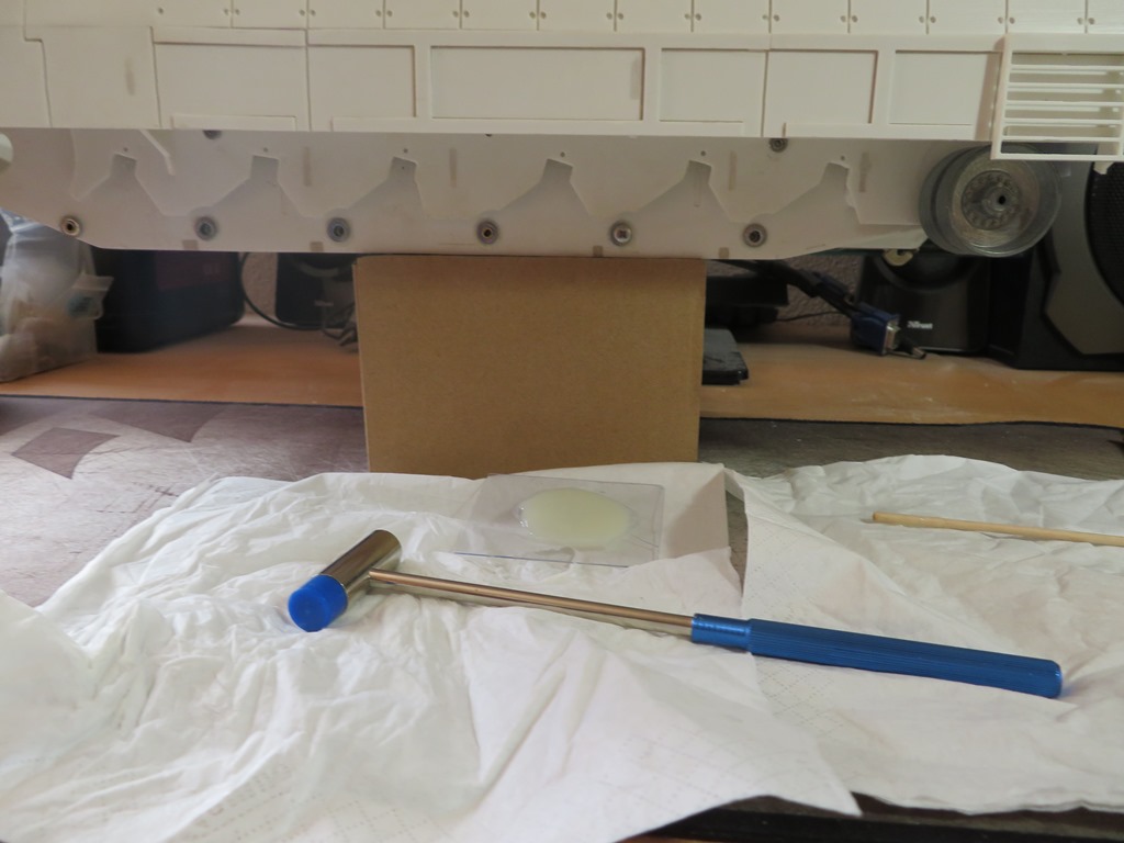 Zur gleichen Zeit, wurden auch die ersten Messing Schrauben mit Unterlegscheibe dann in der Bug Panzerung eingeschraubt.